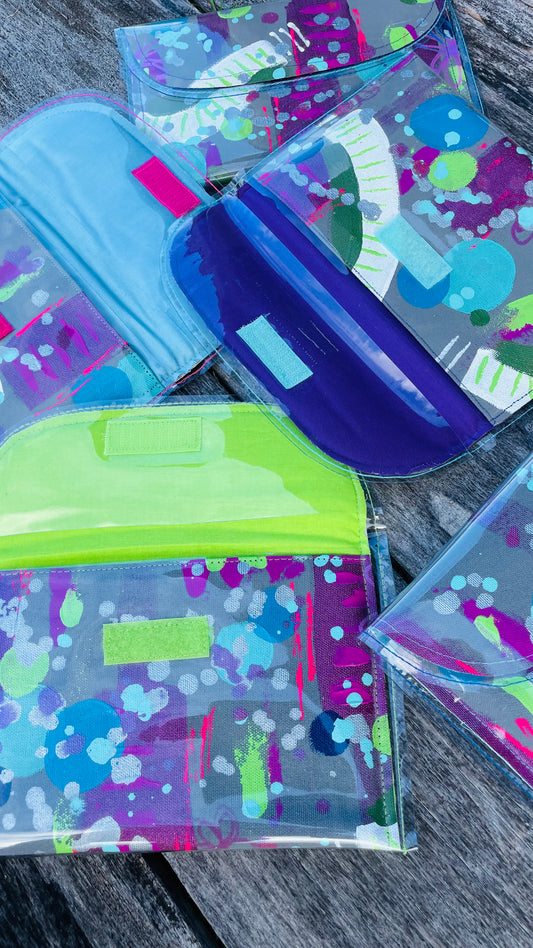 Original artwork turned into a perfect little clutch! Just enough space for a phone, keys, and your wallet.