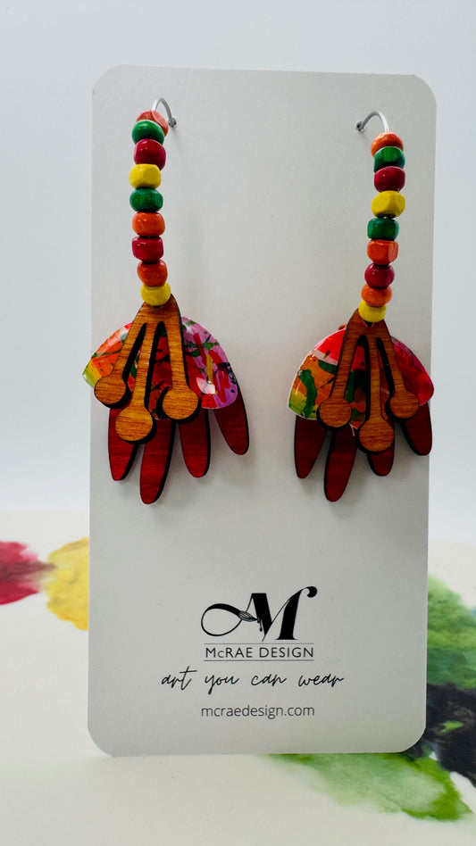 Infused with a pop art spirit, these earrings explode with a rainbow of hues—bright, punchy, and full of personality. Accents of hand-dyed wooden pieces and natural wooden beads add texture and contrast, grounding the electric palette with earthy warmth.