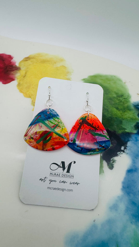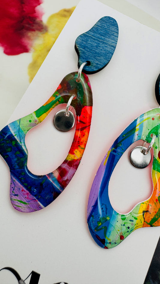 Step into a spectrum of bold expression with Neon Rainbow, a vibrant collection of small batch earrings. Each pair begins as a hand-painted original, transformed into miniature masterpieces that celebrate color, creativity, and individuality.