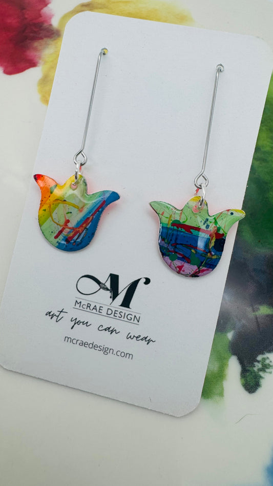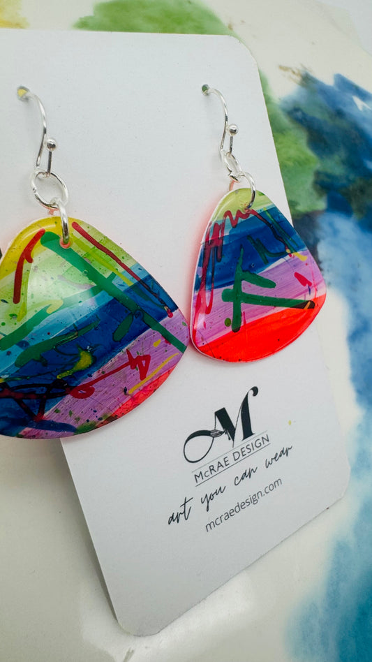 Step into a spectrum of bold expression with Neon Rainbow, a vibrant collection of small batch earrings. Each pair begins as a hand-painted original, transformed into miniature masterpieces that celebrate color, creativity, and individuality.