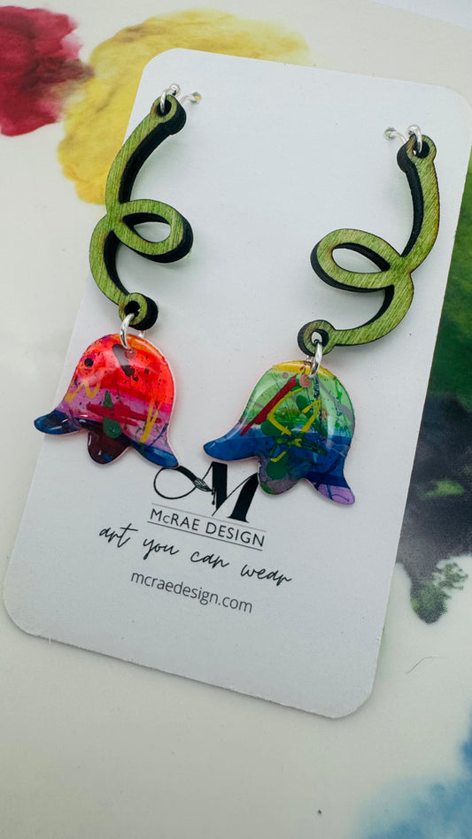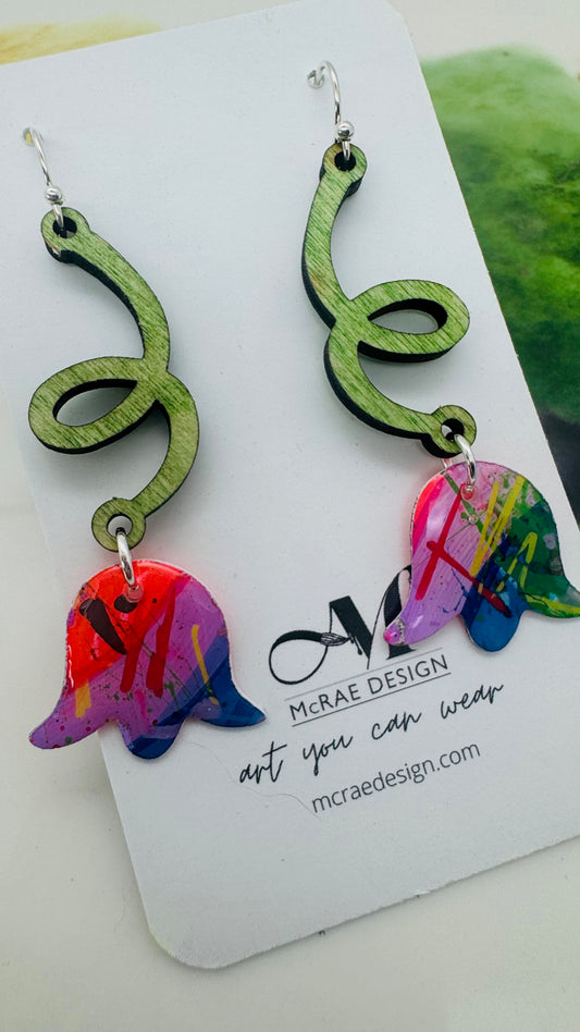 Infused with a pop art spirit, these earrings explode with a rainbow of hues—bright, punchy, and full of personality. Accents of hand-dyed wooden pieces and natural wooden beads add texture and contrast, grounding the electric palette with earthy warmth.