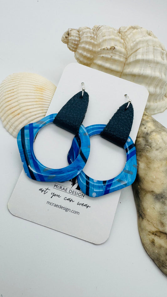 All the ocean blues painted onto paper. Coated on both side with resin to make them shiny and durable. Guaranteed to bring you compliments and add a little summer to any day. Pairs perfectly with almost any outfit - they will look great with jean to a dress.