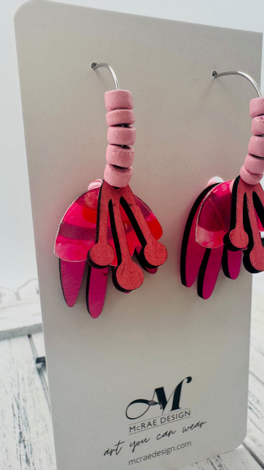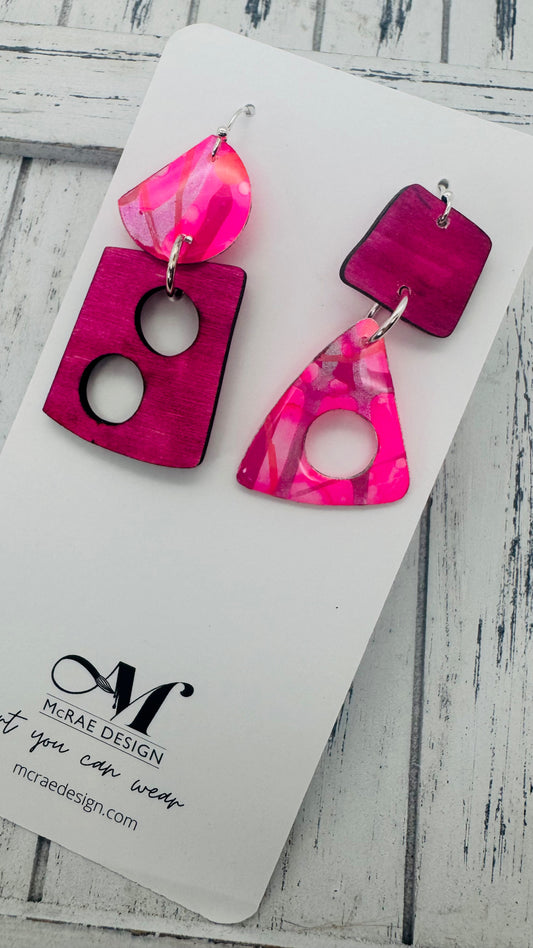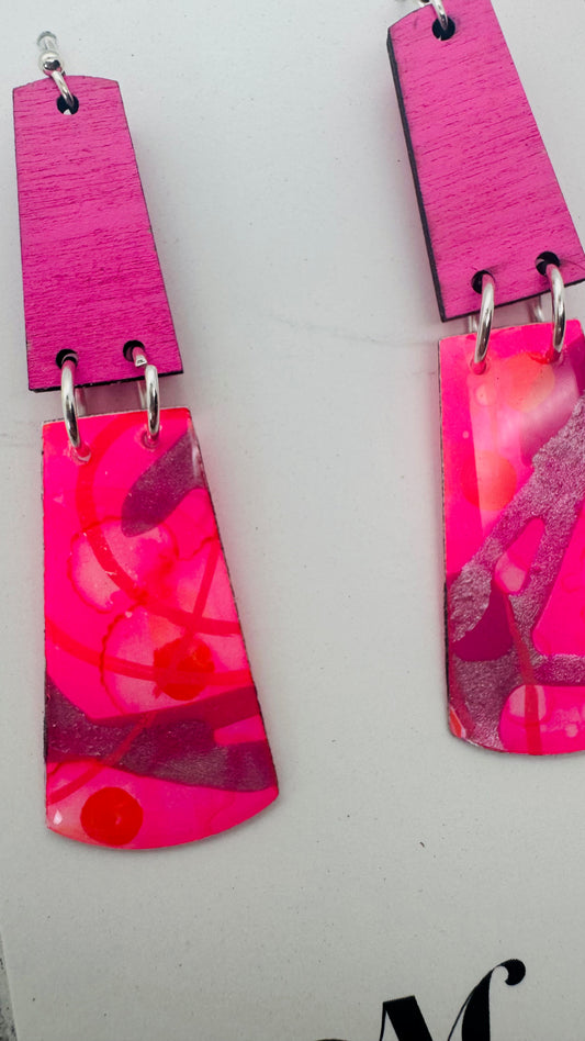 Step into a world of electric summer vibes with the "Pink Cadillac" earring collection. A perfect blend of retro nostalgia and bold, modern style, these earrings are an ode to everything fun and fearless. Each piece features hand-painted pink hues—fluorescent pink, metallic silvery pink, and just the right touch of coral and fuchsia—encased in high-gloss resin for a glossy, eye-catching finish.