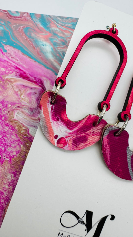 Step into a world of electric summer vibes with the "Pink Cadillac" earring collection. A perfect blend of retro nostalgia and bold, modern style, these earrings are an ode to everything fun and fearless. Each piece features hand-painted pink hues—fluorescent pink, metallic silvery pink, and just the right touch of coral and fuchsia.
