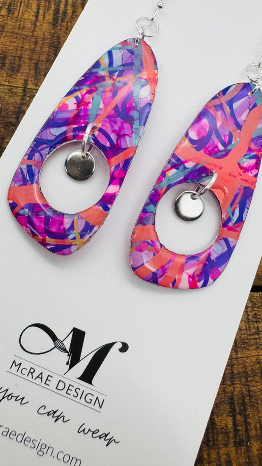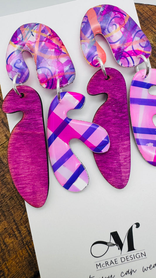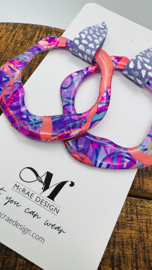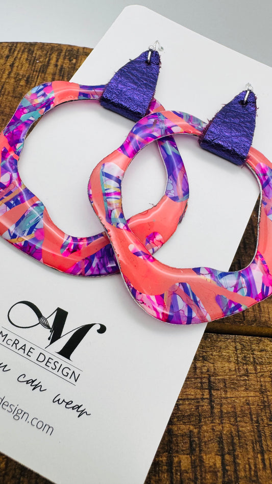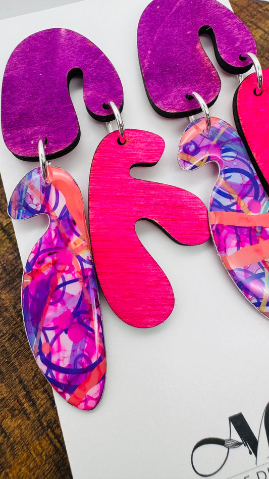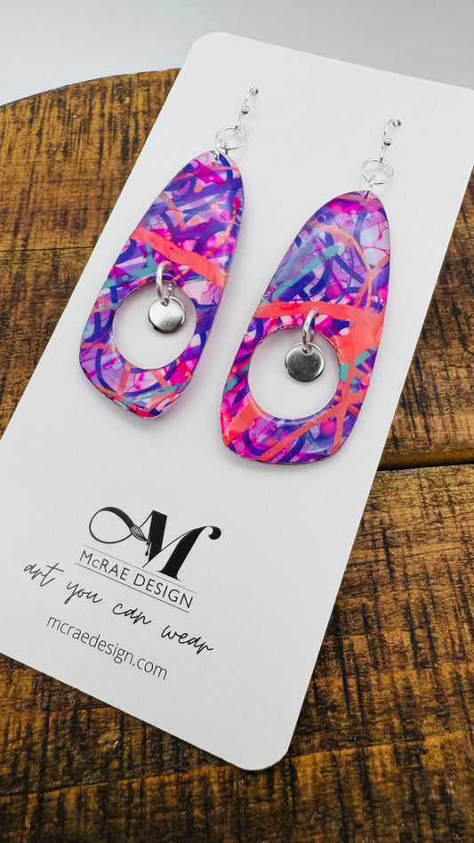 Step into a kaleidoscope of color with the Purple Haze Collection. Each earring is hand-painted and transformed into a one-of-a-kind work of art, blending vibrant purples, pinks, corals, and playful patterns.