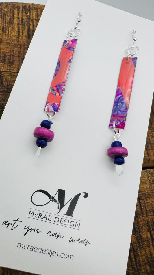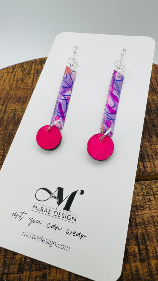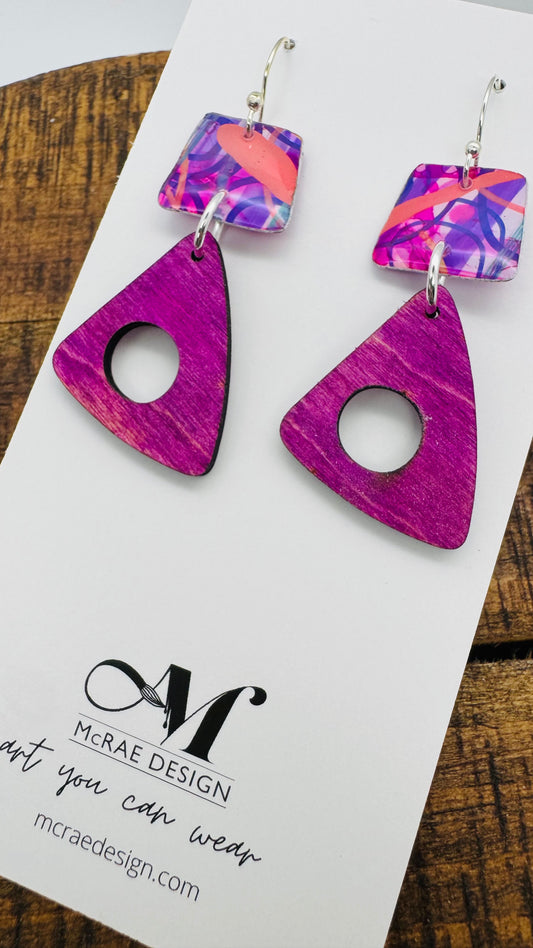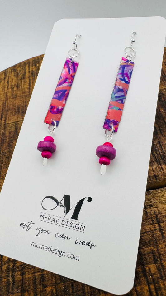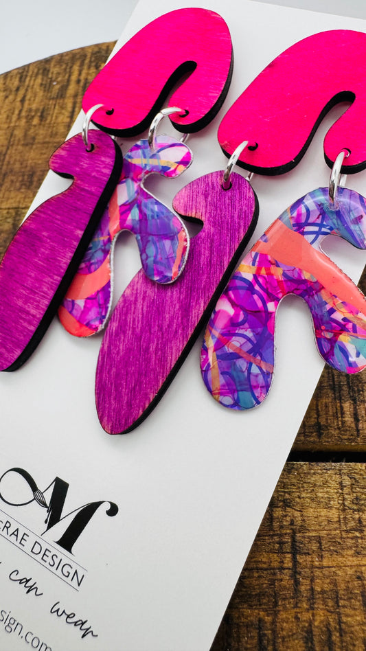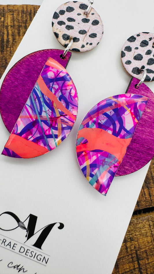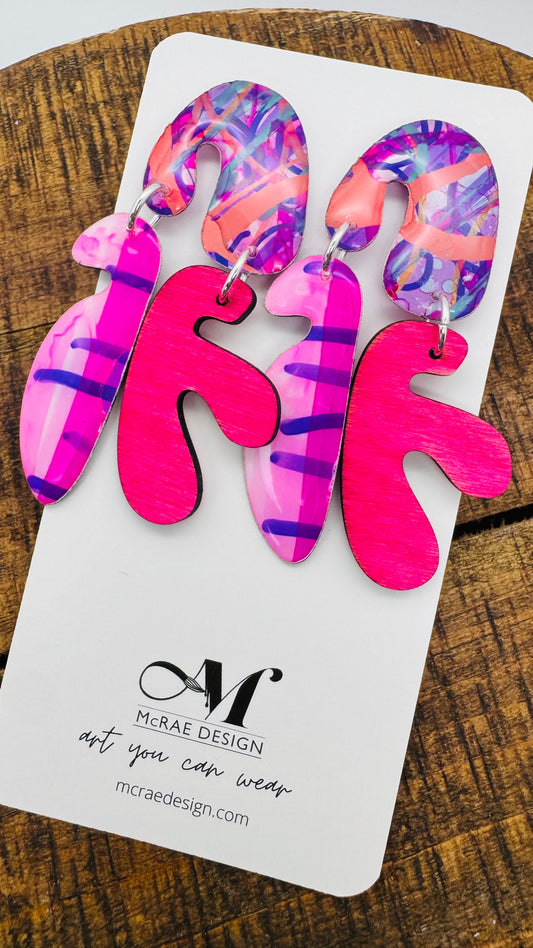 Step into a kaleidoscope of color with the Purple Haze Collection. Each earring is hand-painted and transformed into a one-of-a-kind work of art, blending vibrant purples, pinks, corals, and playful patterns.