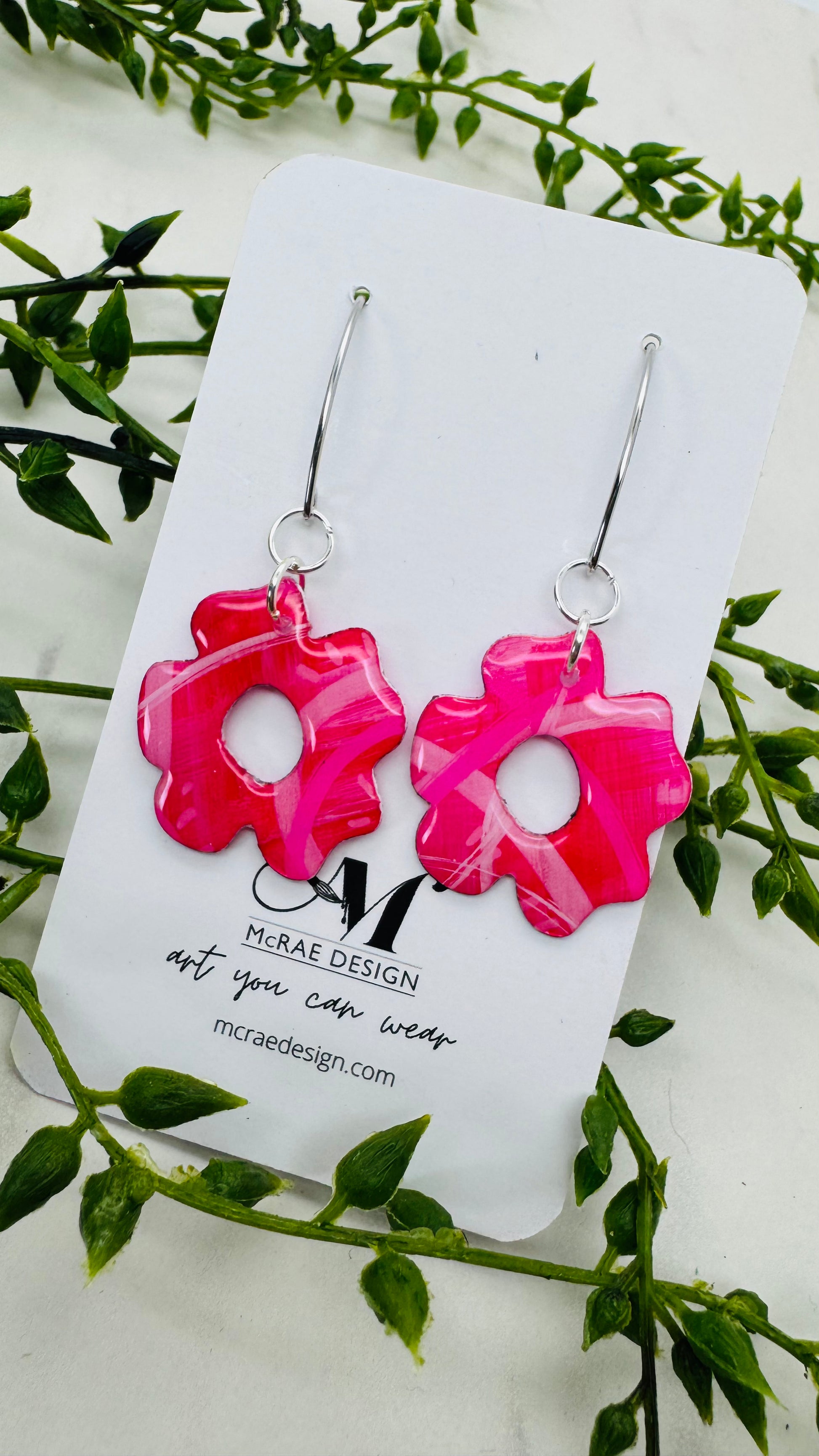 Flowers are blooming everywhere! Purples, pinks and yellows paintings on paper sealed with resin. Accented with dyed wooden stems. Every pair is one of a kind and guaranteed to bring your compliments.