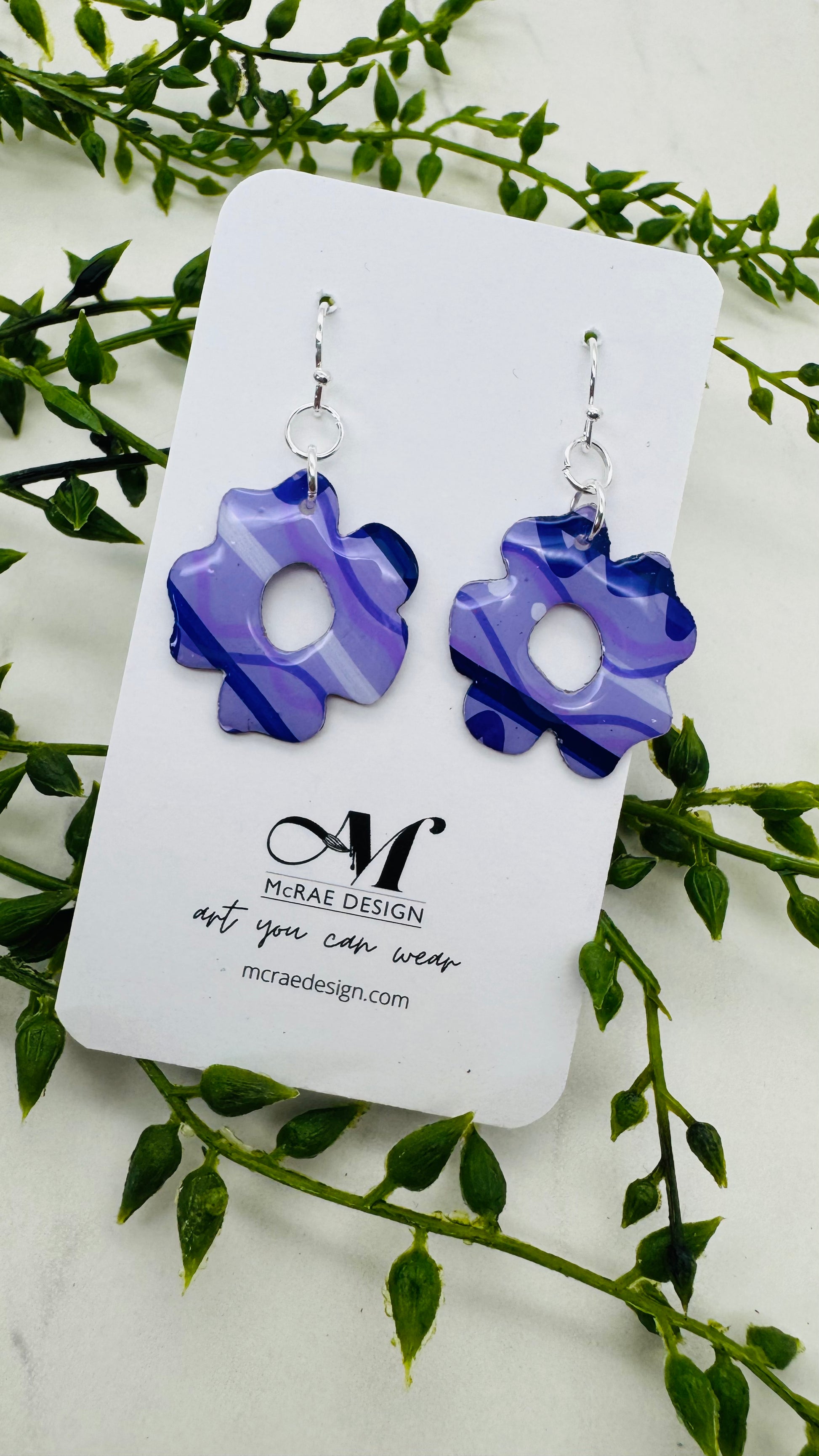 Flowers are blooming everywhere! Purples, pinks and yellows paintings on paper sealed with resin. Accented with dyed wooden stems. Every pair is one of a kind and guaranteed to bring your compliments.