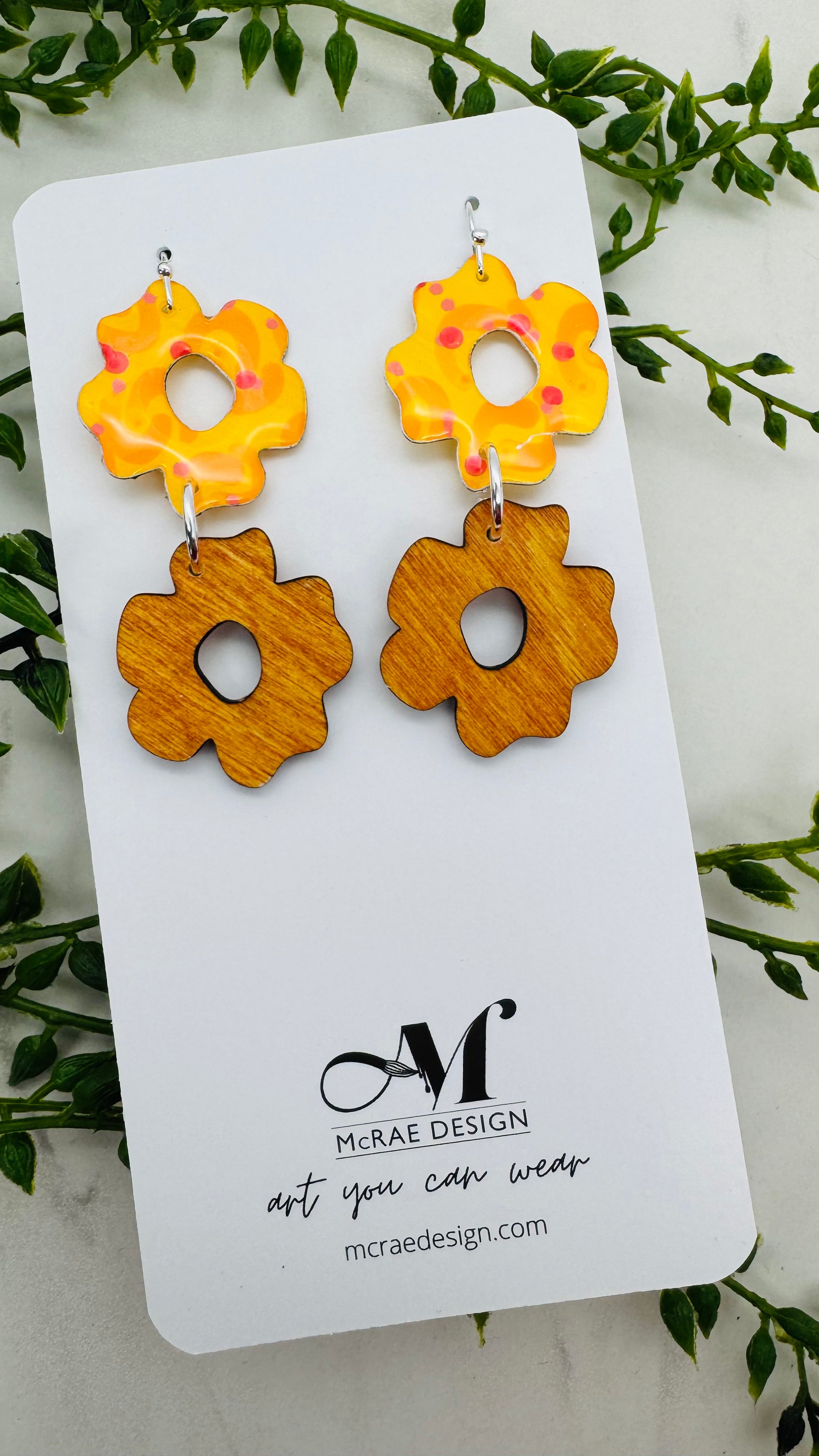 Flowers are blooming everywhere! Purples, pinks and yellows paintings on paper sealed with resin. Accented with dyed wooden stems. Every pair is one of a kind and guaranteed to bring your compliments.