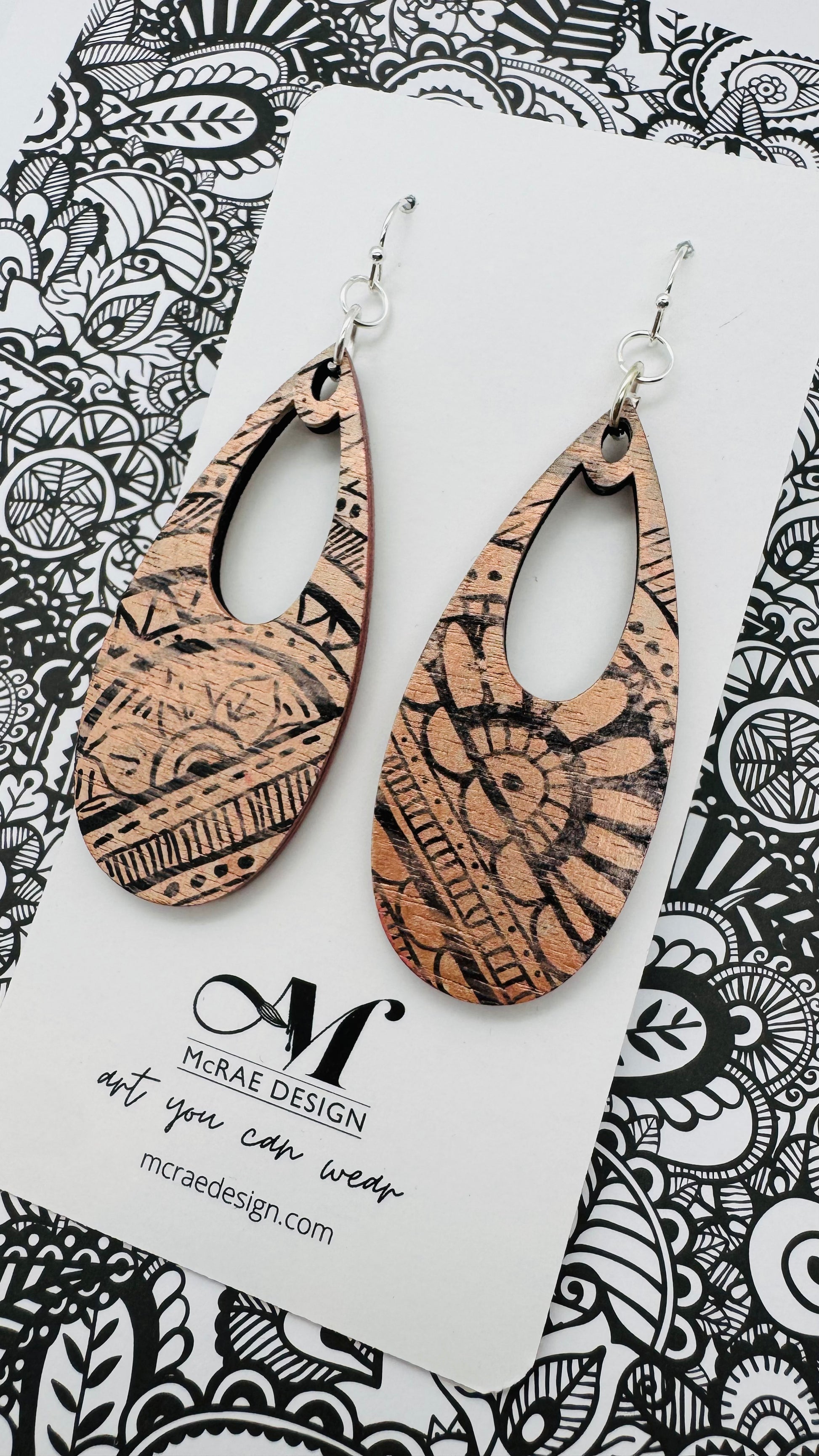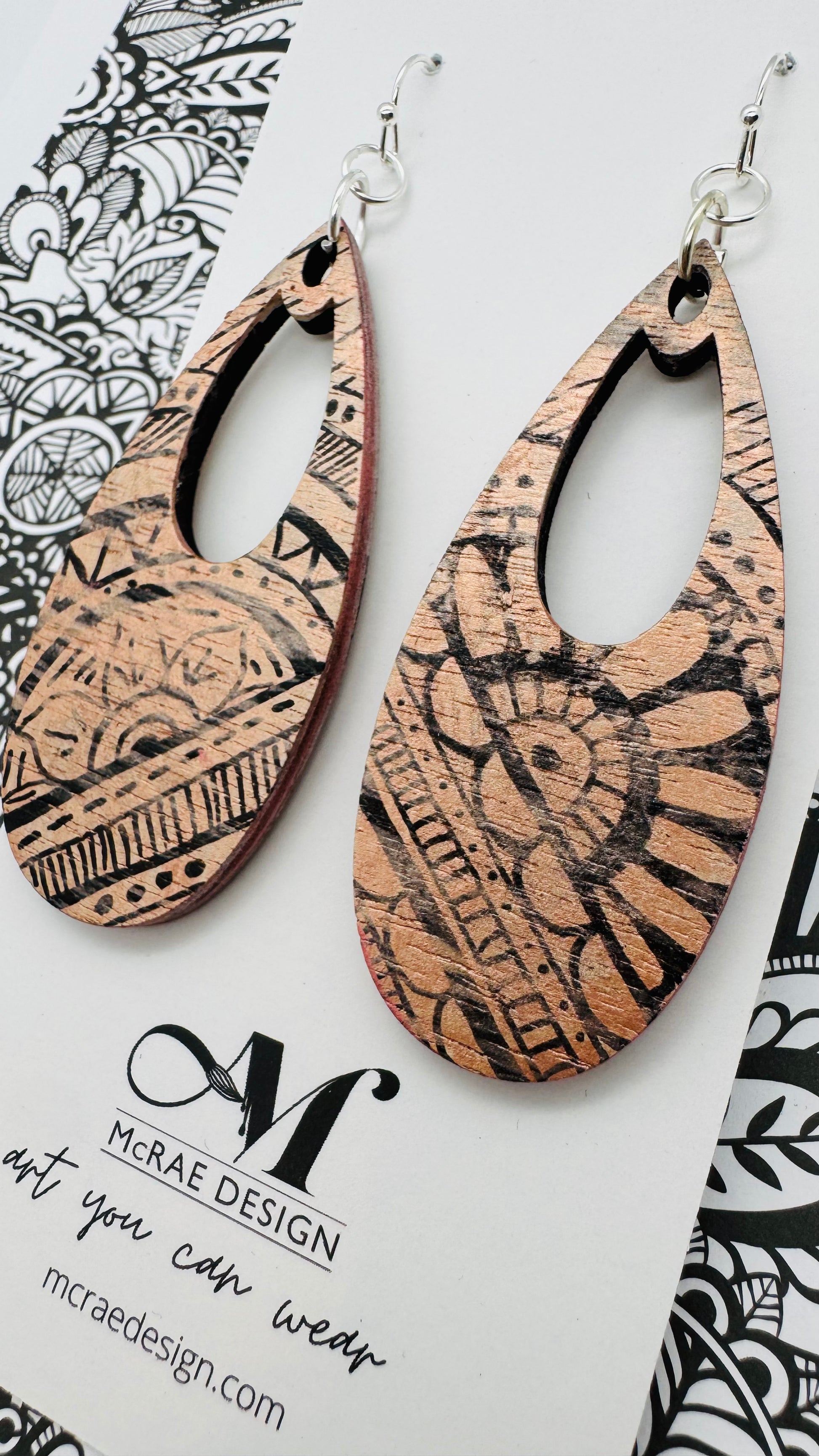 Playful lines, bold shine, and a touch of whimsy. The Doodle collection starts with smooth black walnut, brushed in rose gold and detailed with freehand black ink sketches. No two pieces are ever the same — each one a tiny burst of creativity, caught in wood and shimmer.