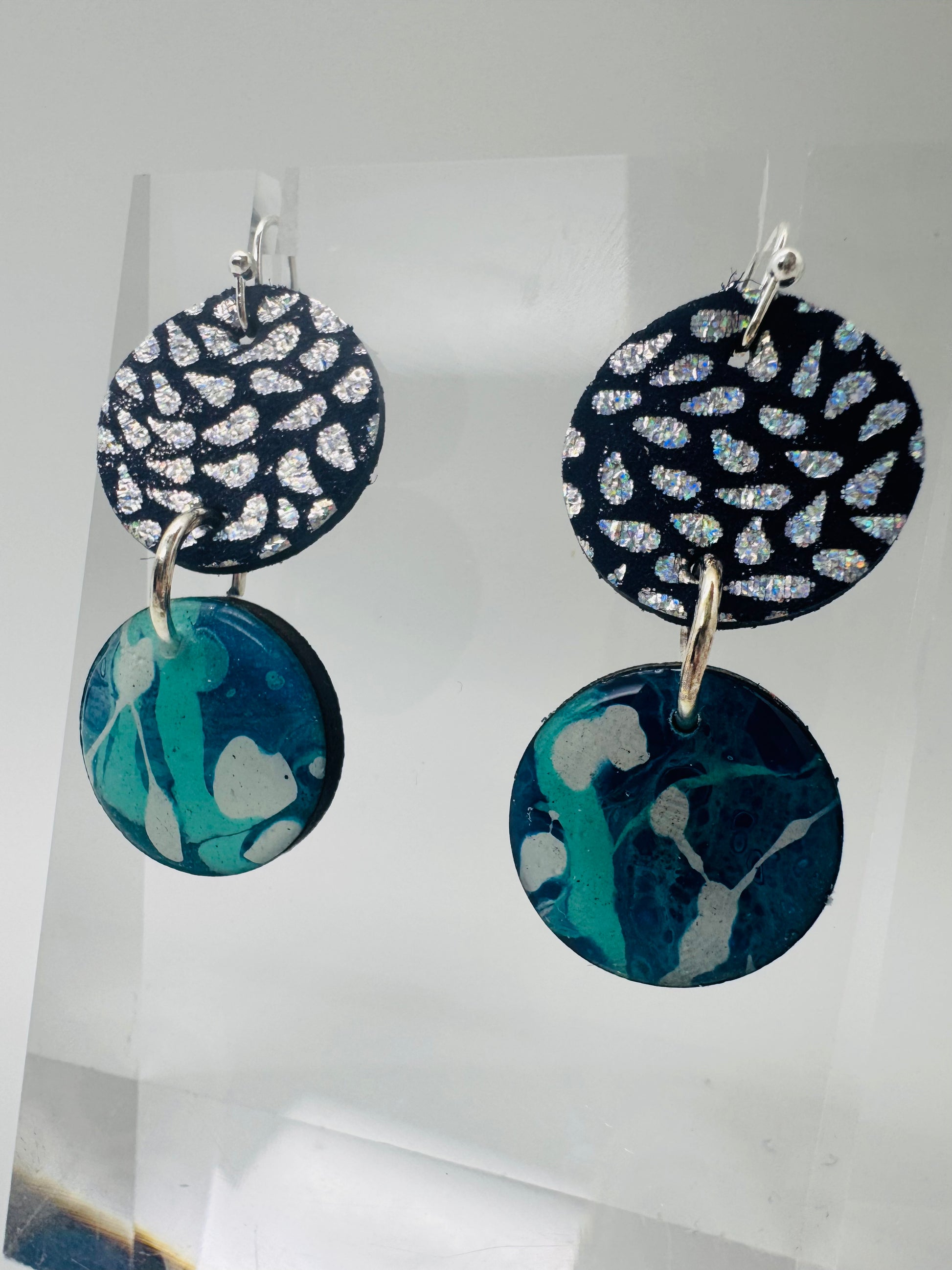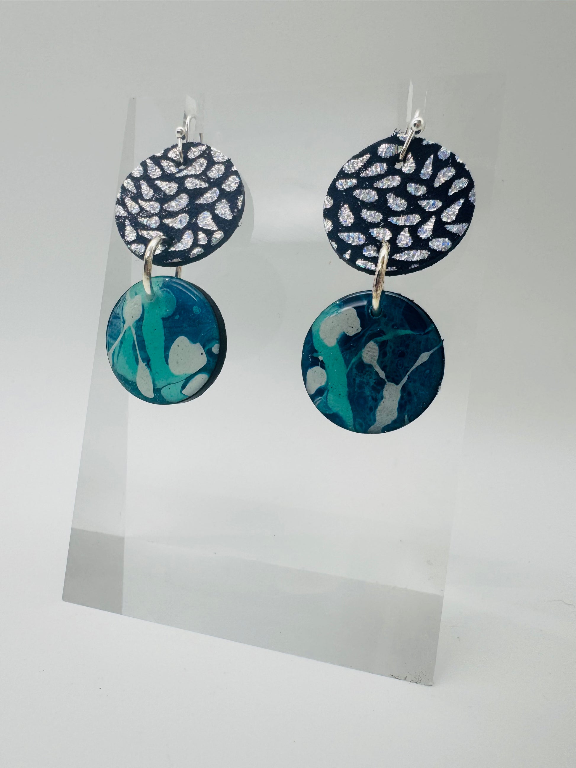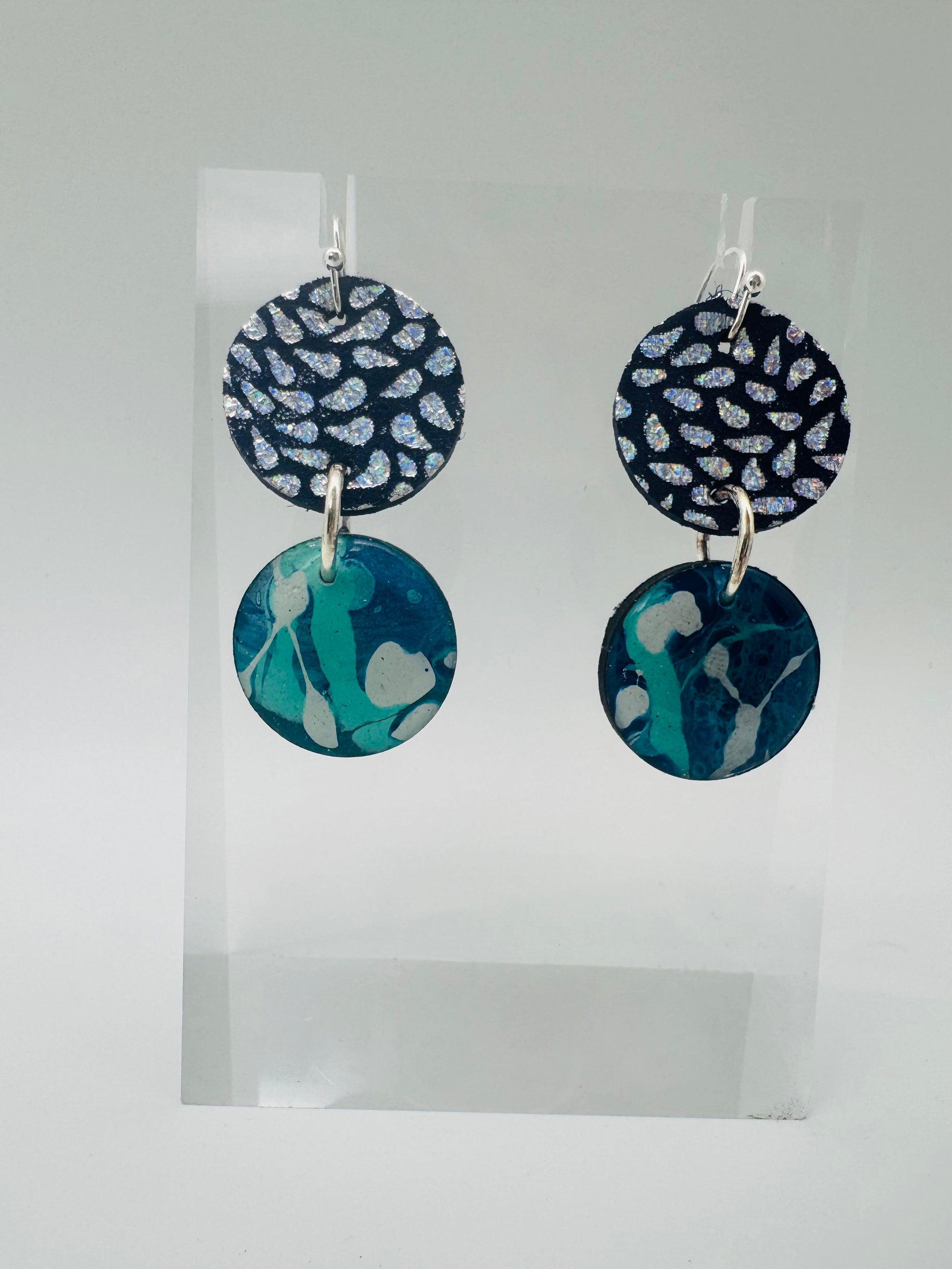 Hand-painted and full of fluid motion, the Drift Collection captures the rhythm of water and the calm of the coast. Each earring is painted on birch wood, then cut and finished to highlight the natural flow of color — no two pairs ever the same. Deep teals and ocean blues blend and swirl like waves finding their way to shore.