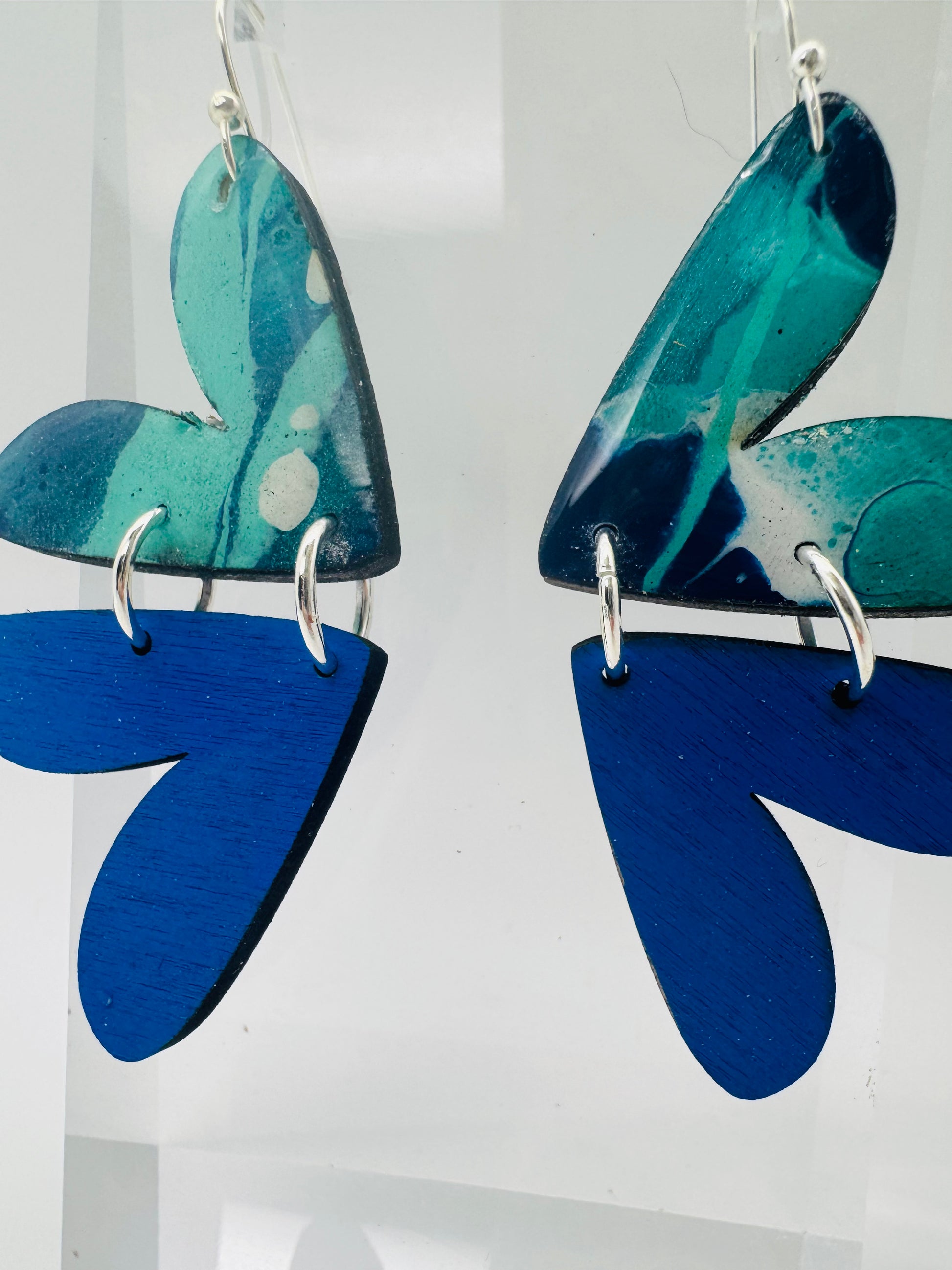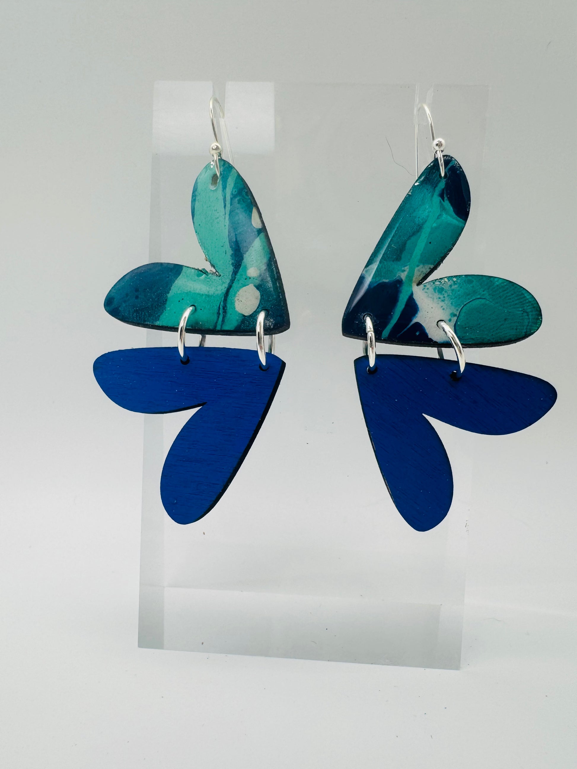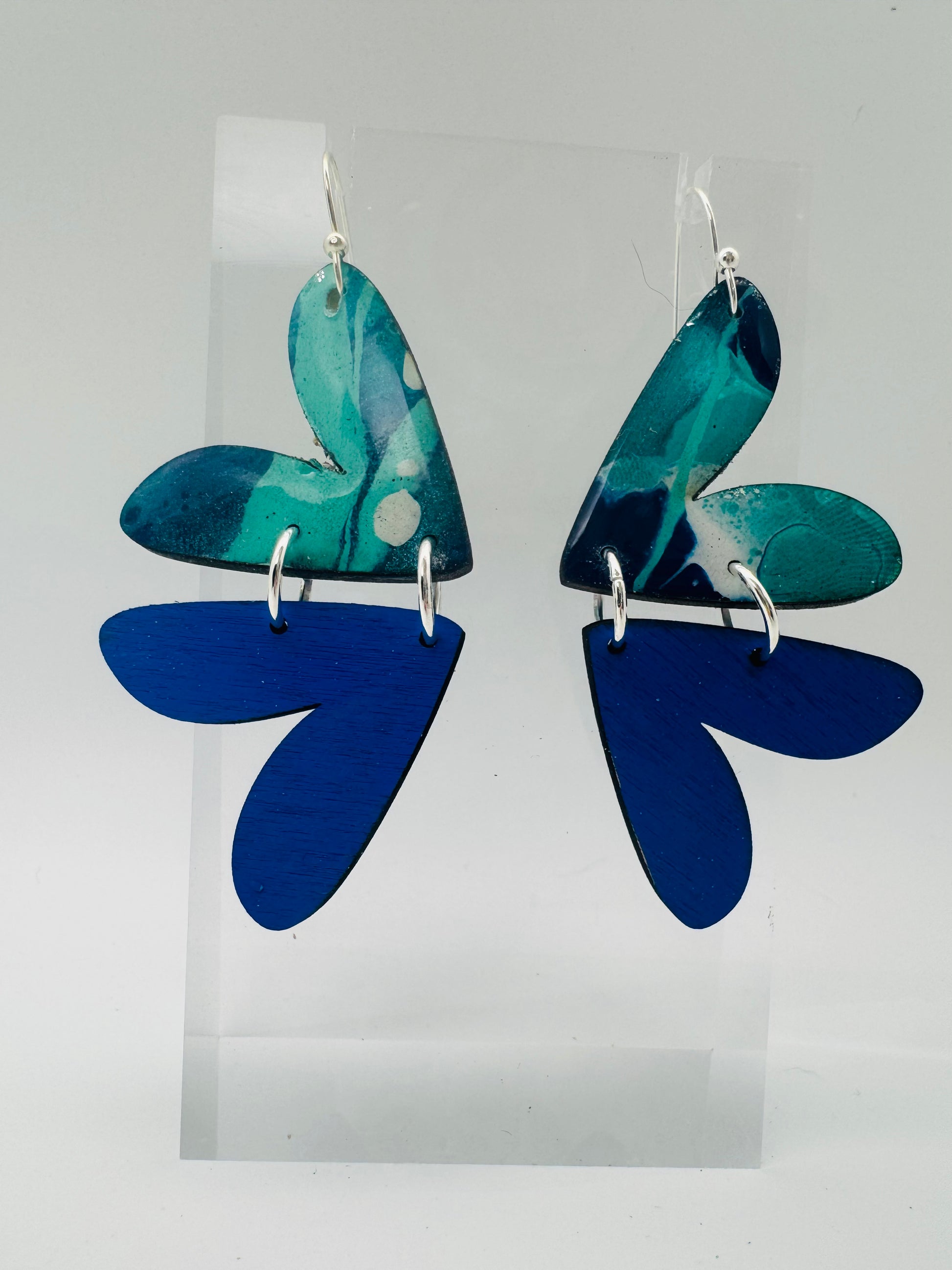 Hand-painted and full of fluid motion, the Drift Collection captures the rhythm of water and the calm of the coast. Each earring is painted on birch wood, then cut and finished to highlight the natural flow of color — no two pairs ever the same. Deep teals and ocean blues blend and swirl like waves finding their way to shore.