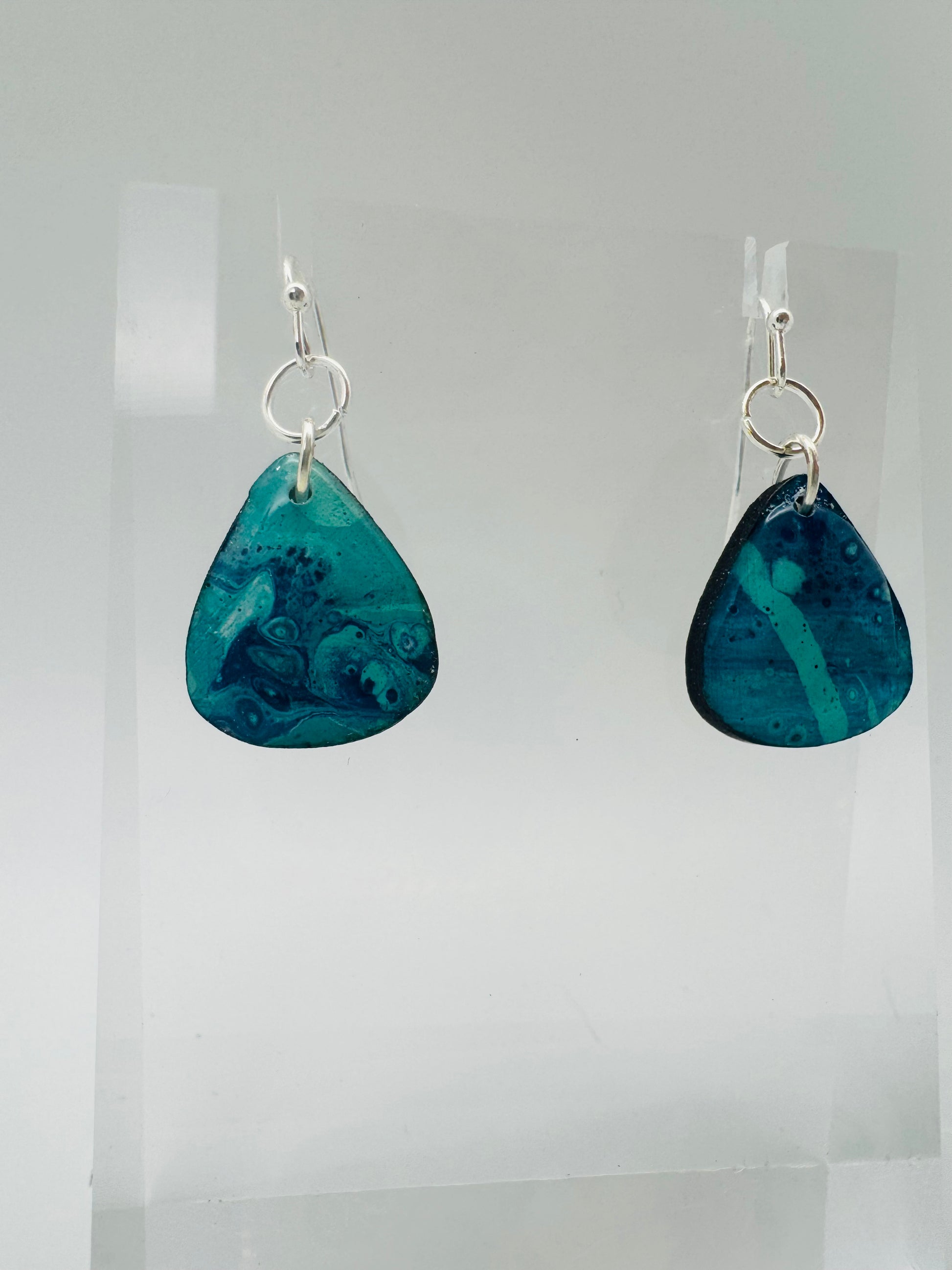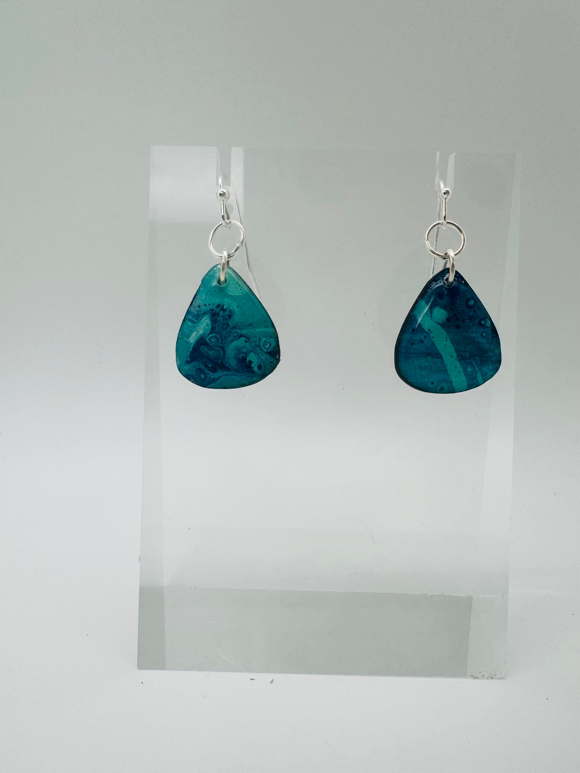 Hand-painted and full of fluid motion, the Drift Collection captures the rhythm of water and the calm of the coast. Each earring is painted on birch wood, then cut and finished to highlight the natural flow of color — no two pairs ever the same. Deep teals and ocean blues blend and swirl like waves finding their way to shore.