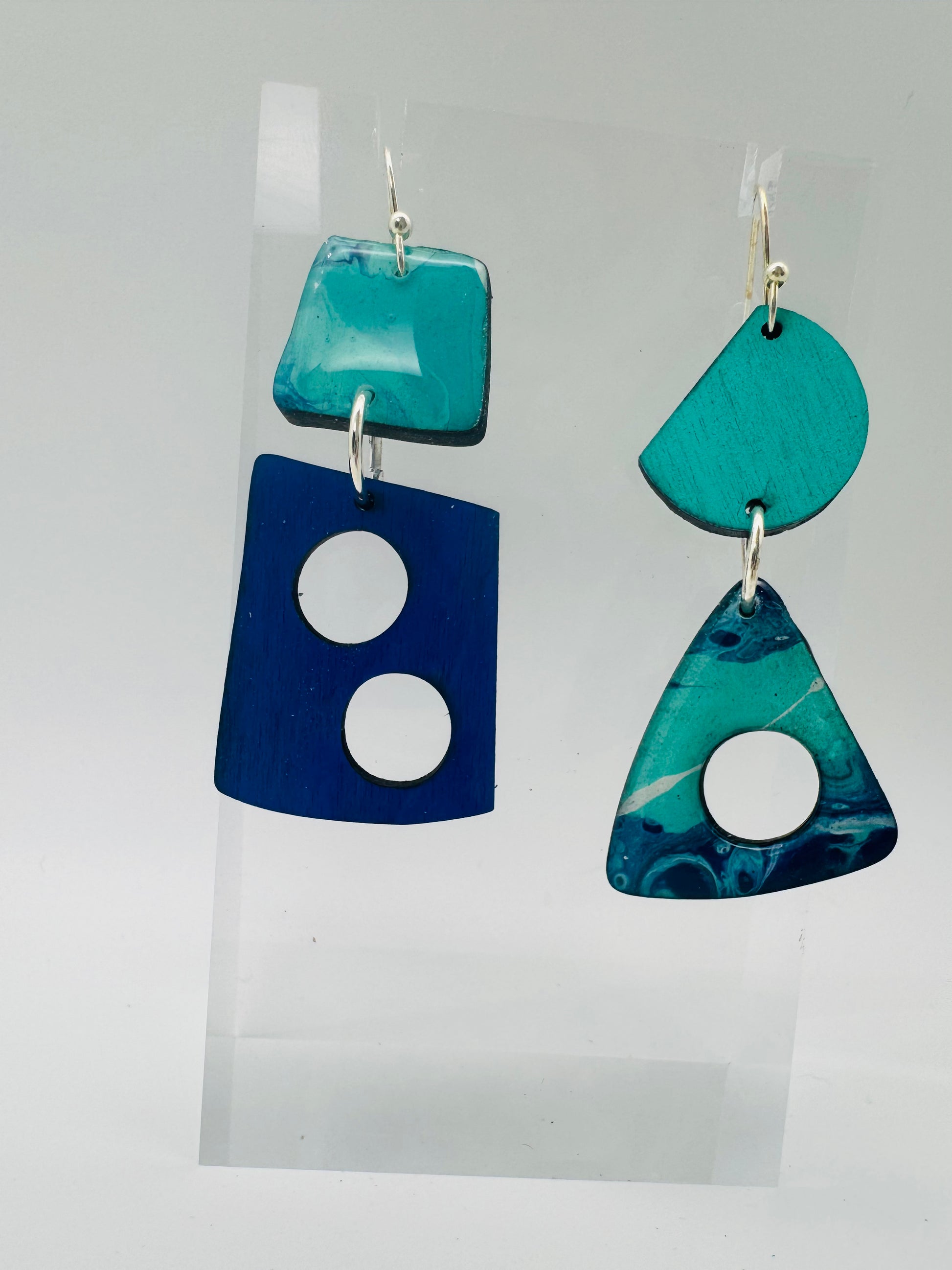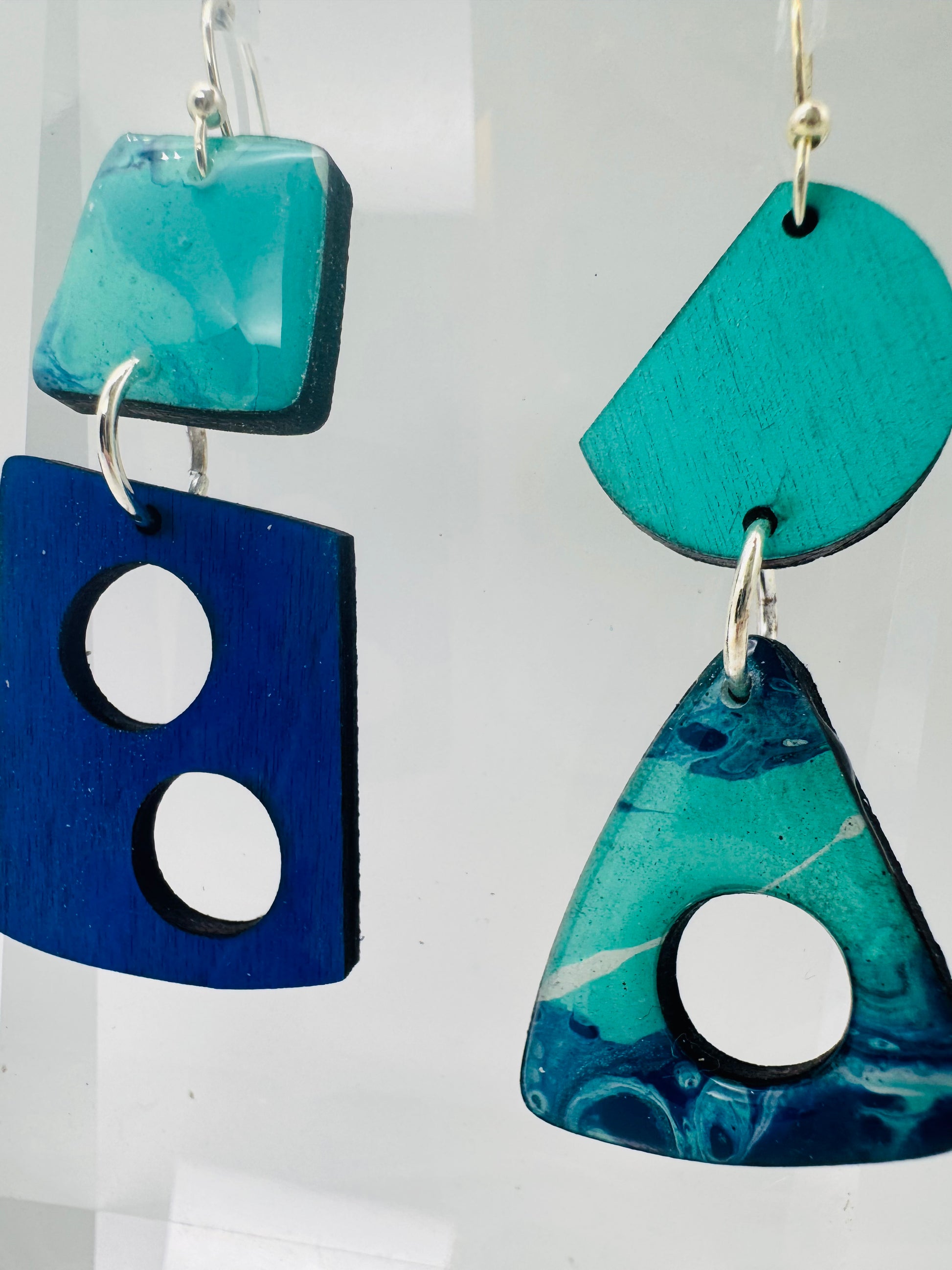Hand-painted and full of fluid motion, the Drift Collection captures the rhythm of water and the calm of the coast. Each earring is painted on birch wood, then cut and finished to highlight the natural flow of color — no two pairs ever the same. Deep teals and ocean blues blend and swirl like waves finding their way to shore.