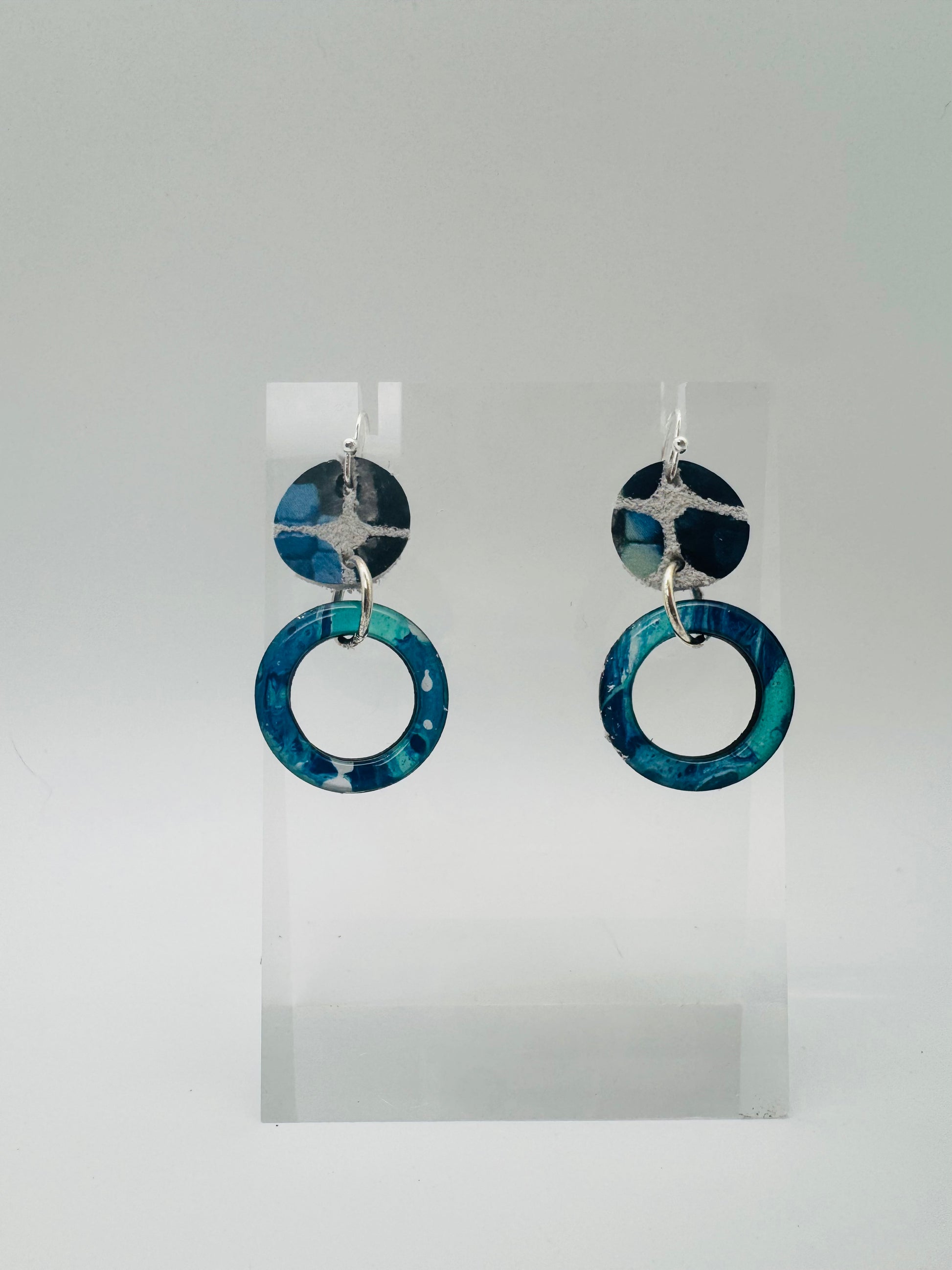 Hand-painted and full of fluid motion, the Drift Collection captures the rhythm of water and the calm of the coast. Each earring is painted on birch wood, then cut and finished to highlight the natural flow of color — no two pairs ever the same. Deep teals and ocean blues blend and swirl like waves finding their way to shore.