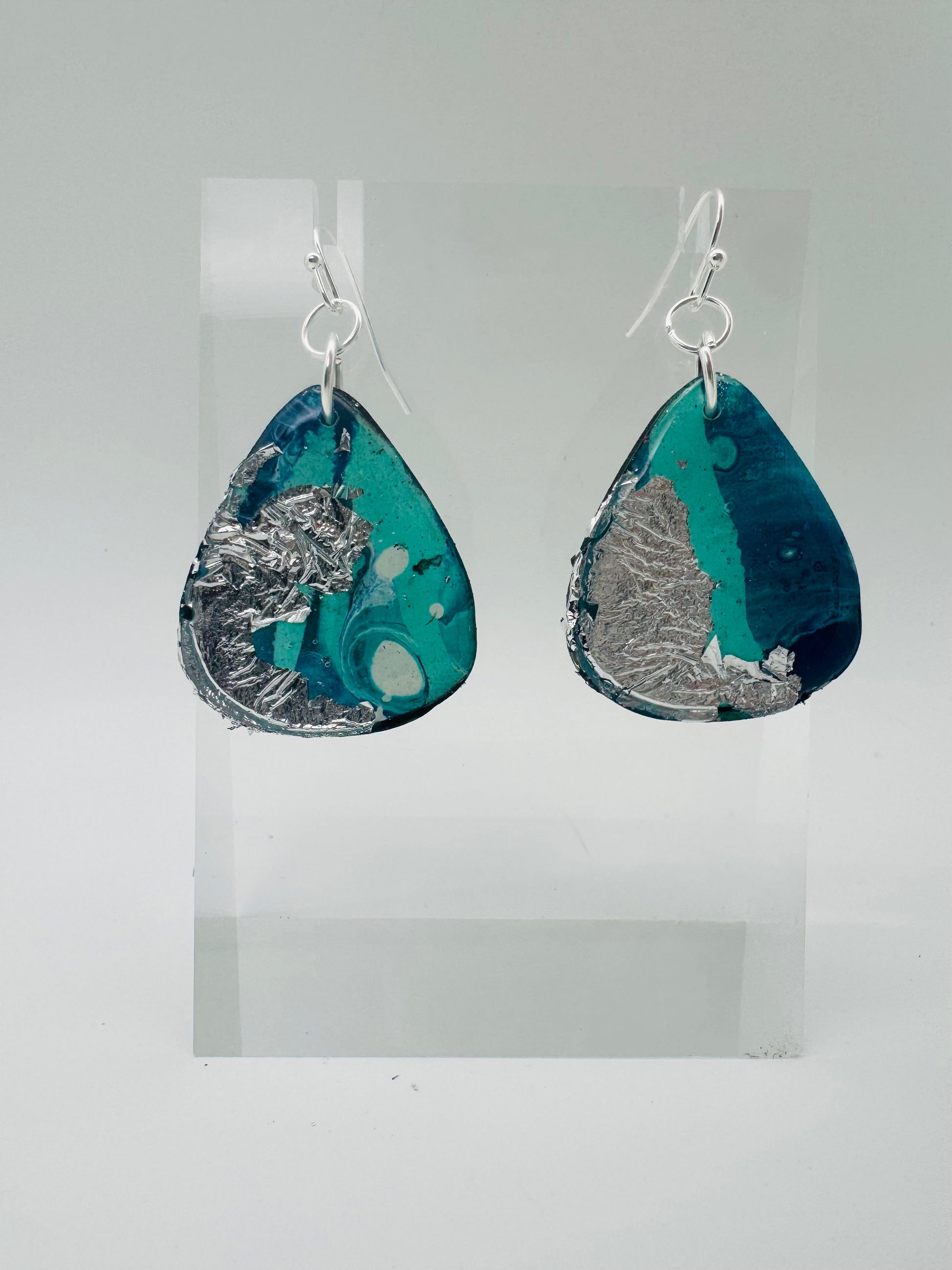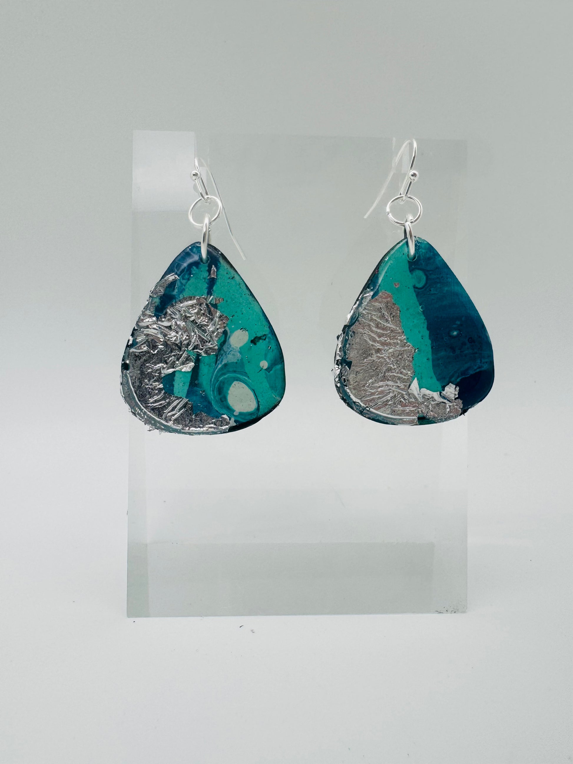Hand-painted and full of fluid motion, the Drift Collection captures the rhythm of water and the calm of the coast. Each earring is painted on birch wood, then cut and finished to highlight the natural flow of color — no two pairs ever the same. Deep teals and ocean blues blend and swirl like waves finding their way to shore.