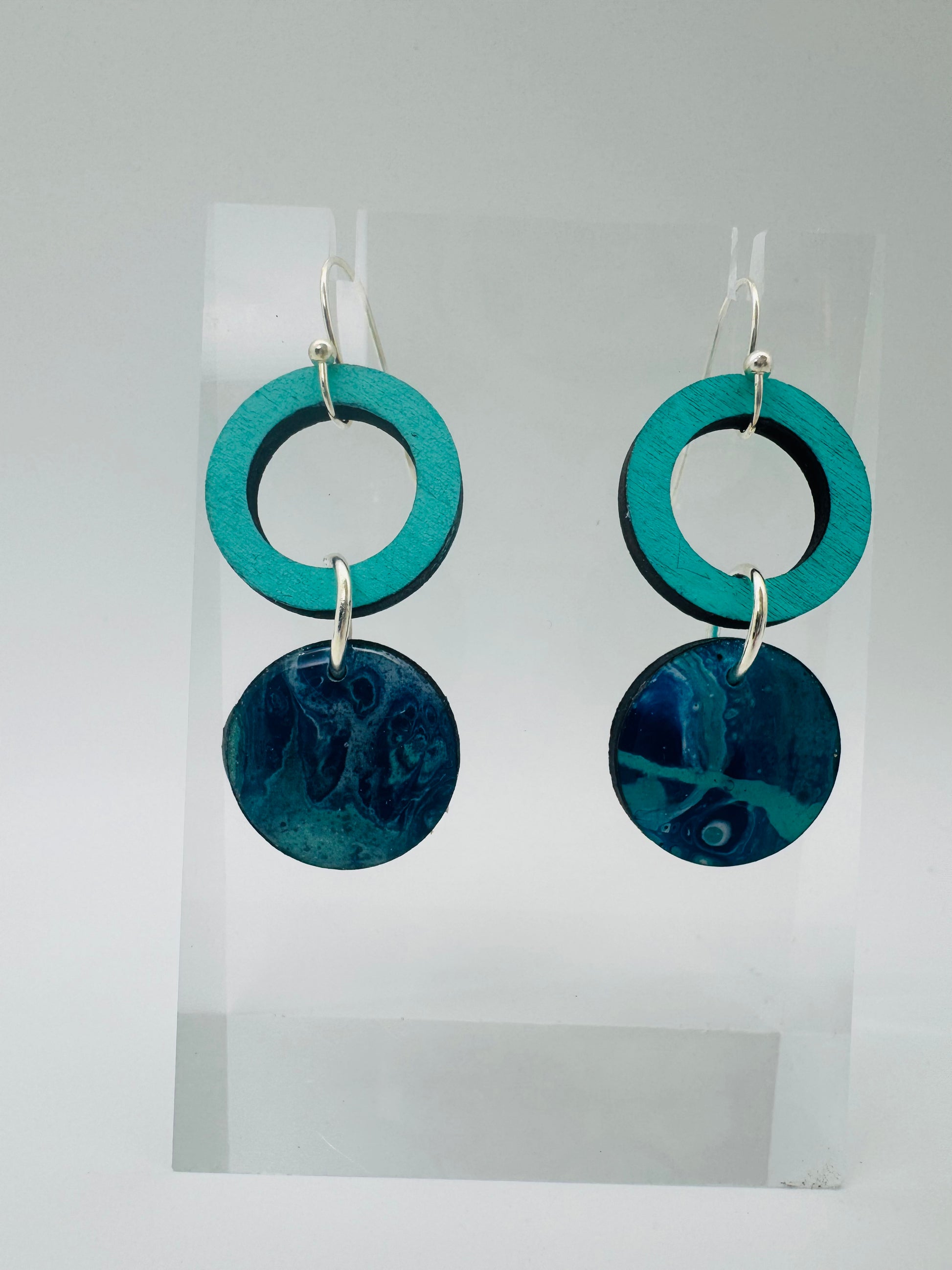 Hand-painted and full of fluid motion, the Drift Collection captures the rhythm of water and the calm of the coast. Each earring is painted on birch wood, then cut and finished to highlight the natural flow of color — no two pairs ever the same. Deep teals and ocean blues blend and swirl like waves finding their way to shore.