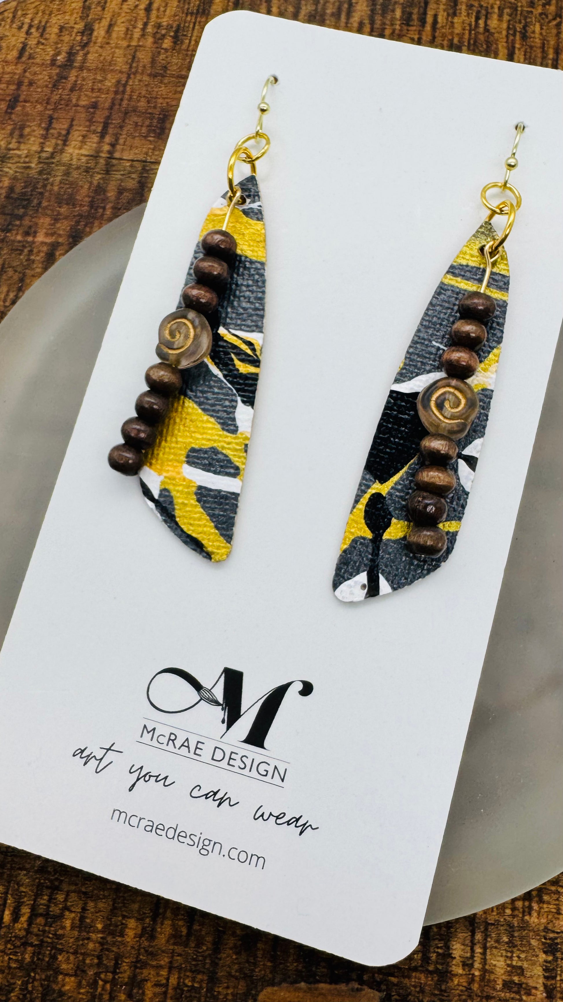 The original painting had vines of gold metallic paint and white speckled lines on a black background. Perfect for pairing with metallic gold leather, some pops of gold leopard and the NEW black polymer clay posts.