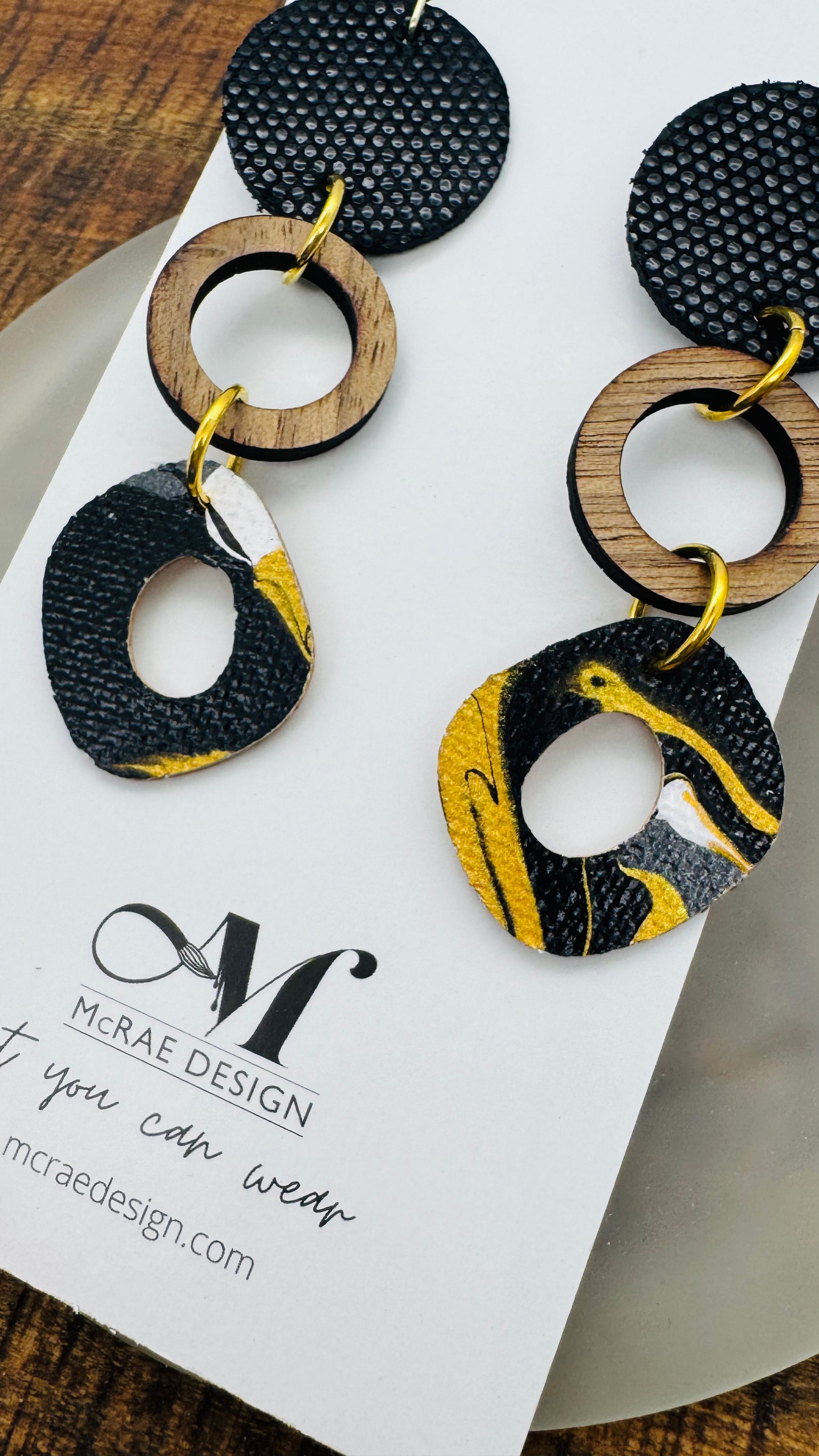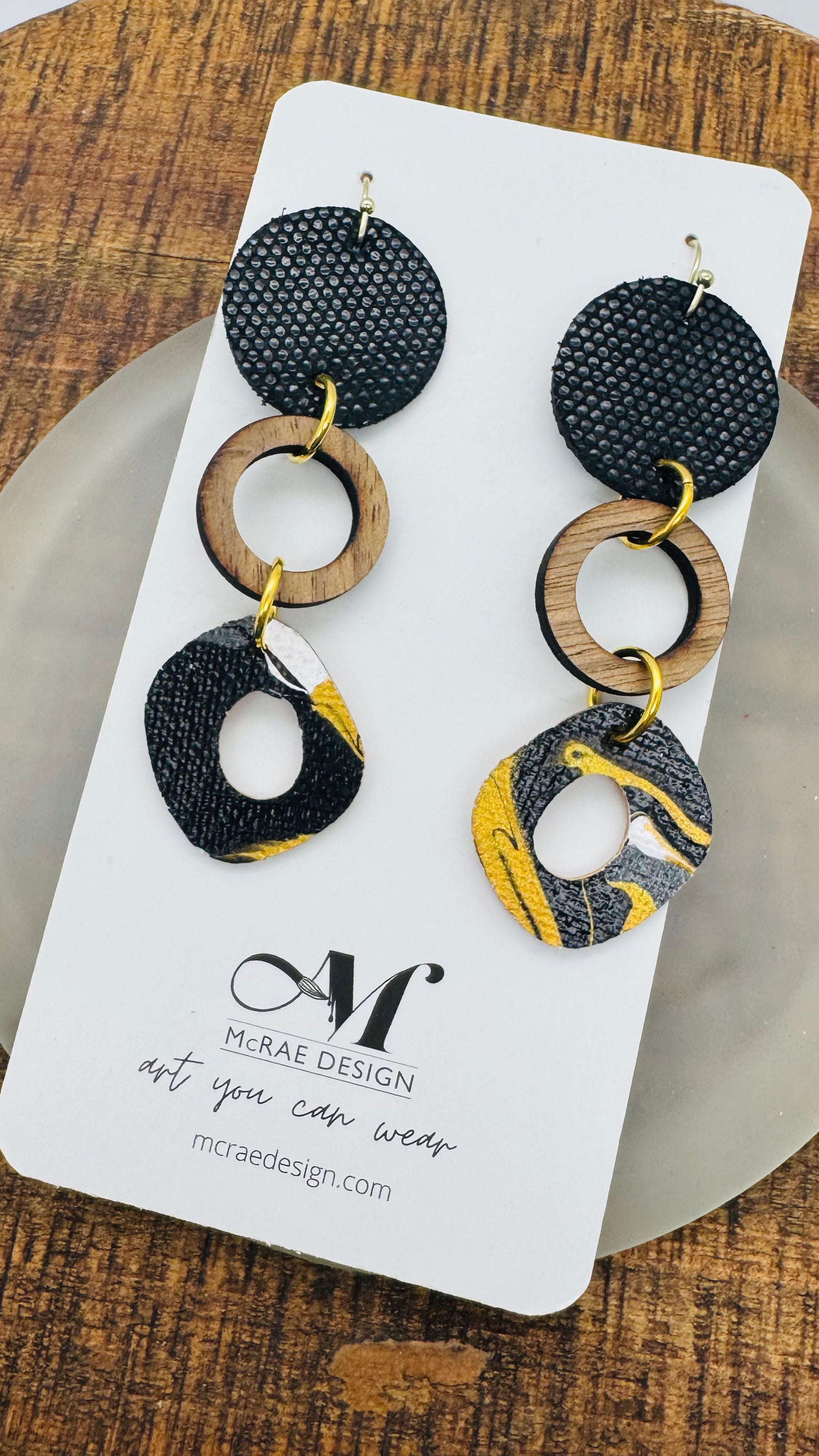 The original painting had vines of gold metallic paint and white speckled lines on a black background. Perfect for pairing with metallic gold leather, some pops of gold leopard and the NEW black polymer clay posts.