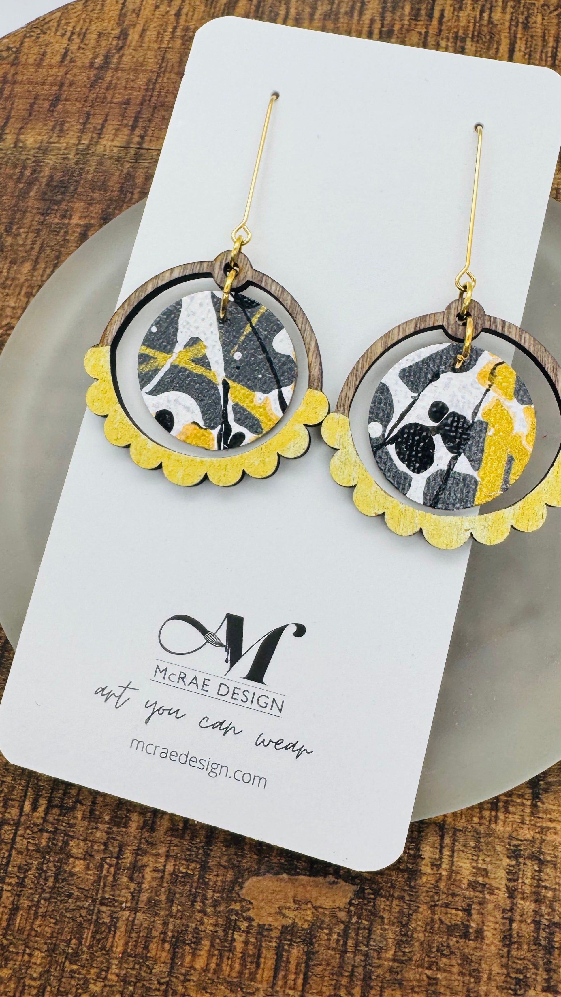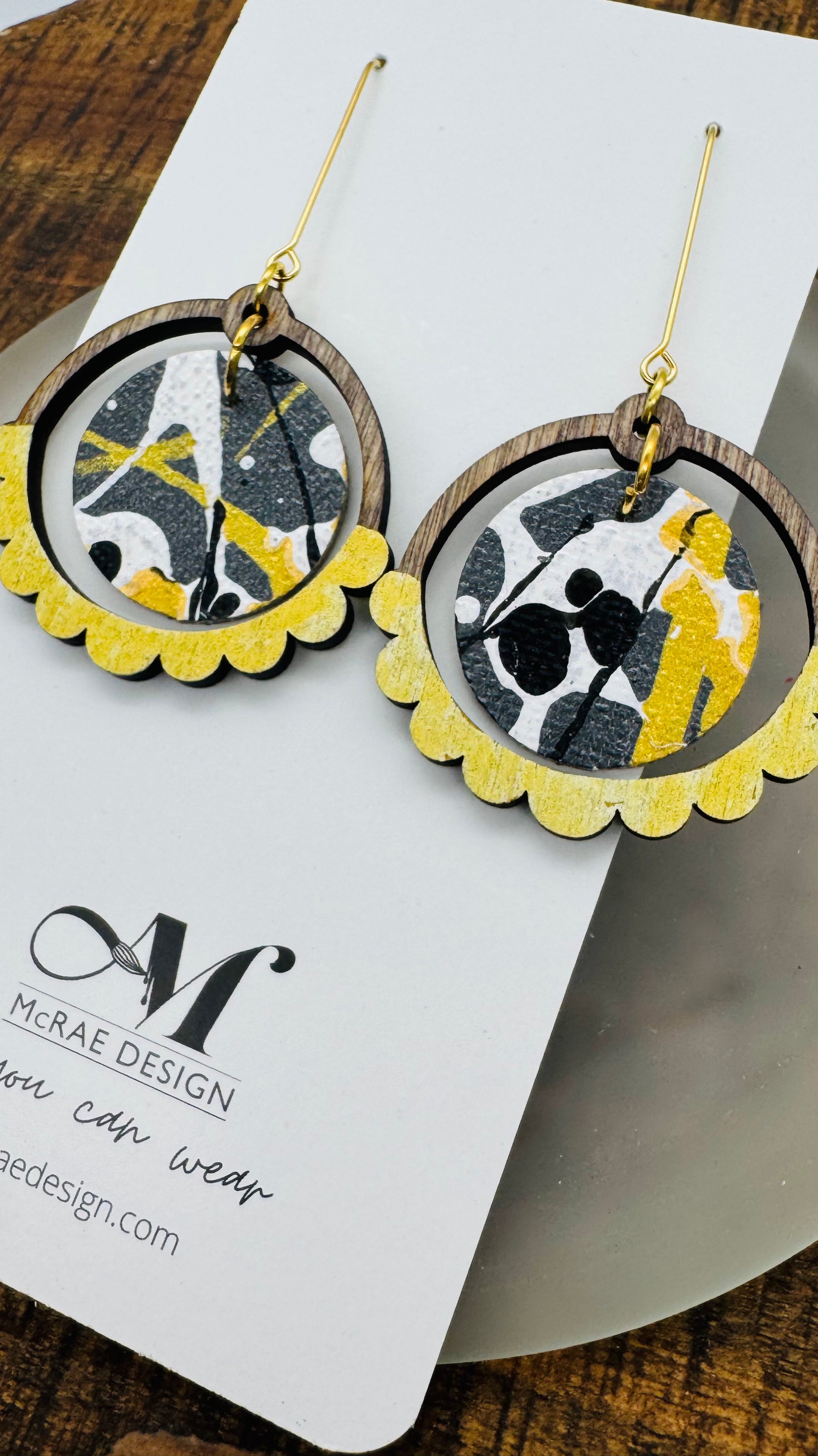 The original painting had vines of gold metallic paint and white speckled lines on a black background. Perfect for pairing with metallic gold leather, some pops of gold leopard and the NEW black polymer clay posts.