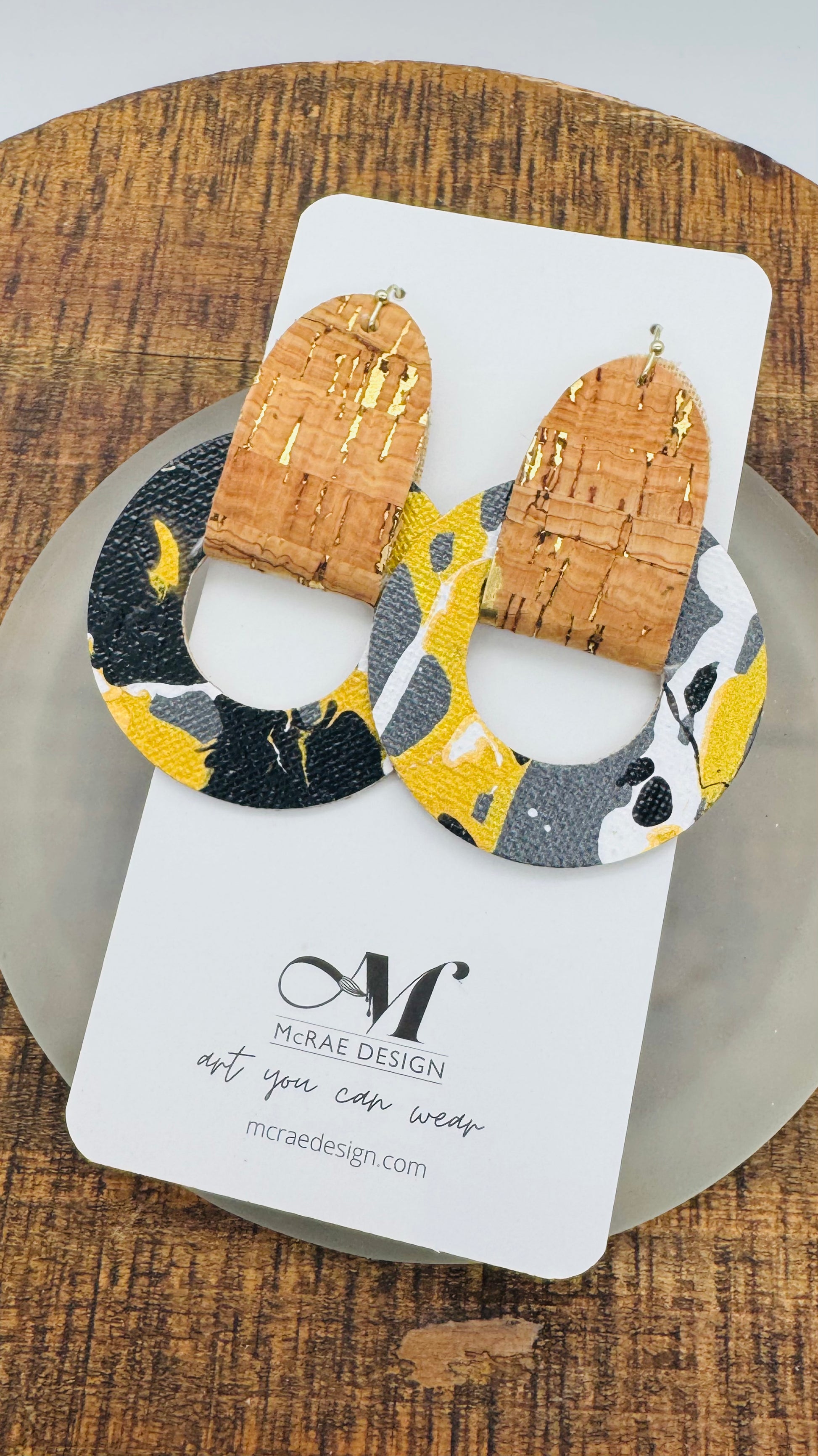 Painted on CANVAS backed with metallic cork. On 14K plated nickel-free hooks. Total length is approximately 3 inches.