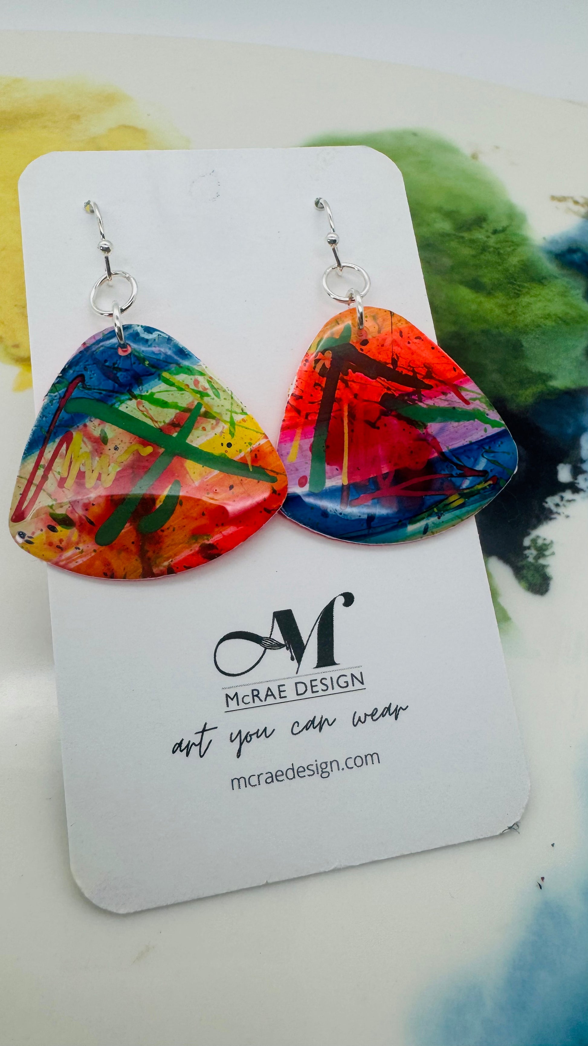 Step into a spectrum of bold expression with Neon Rainbow, a vibrant collection of small batch earrings. Each pair begins as a hand-painted original, transformed into miniature masterpieces that celebrate color, creativity, and individuality.