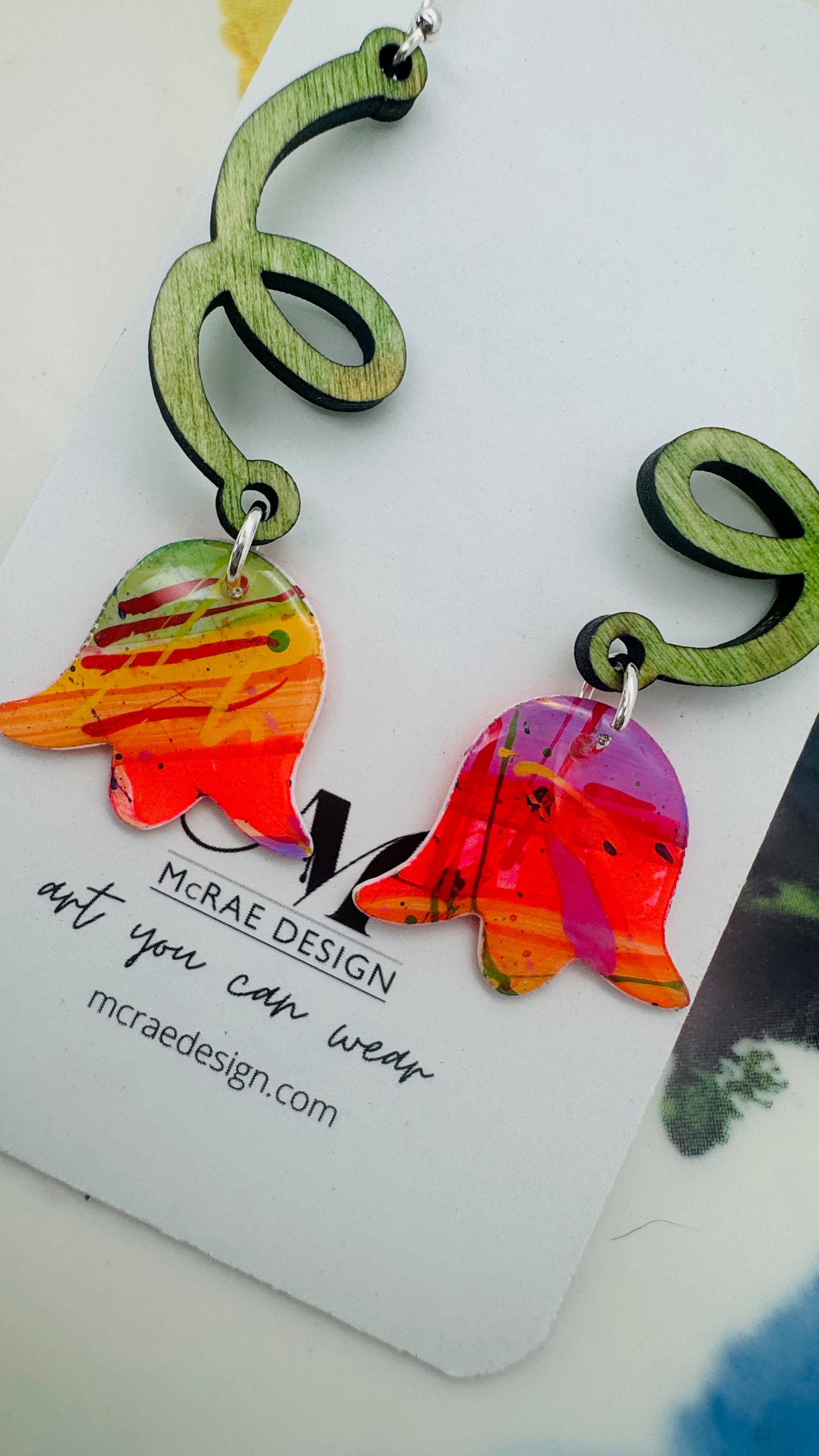 Step into a spectrum of bold expression with Neon Rainbow, a vibrant collection of small batch earrings. Each pair begins as a hand-painted original, transformed into miniature masterpieces that celebrate color, creativity, and individuality.