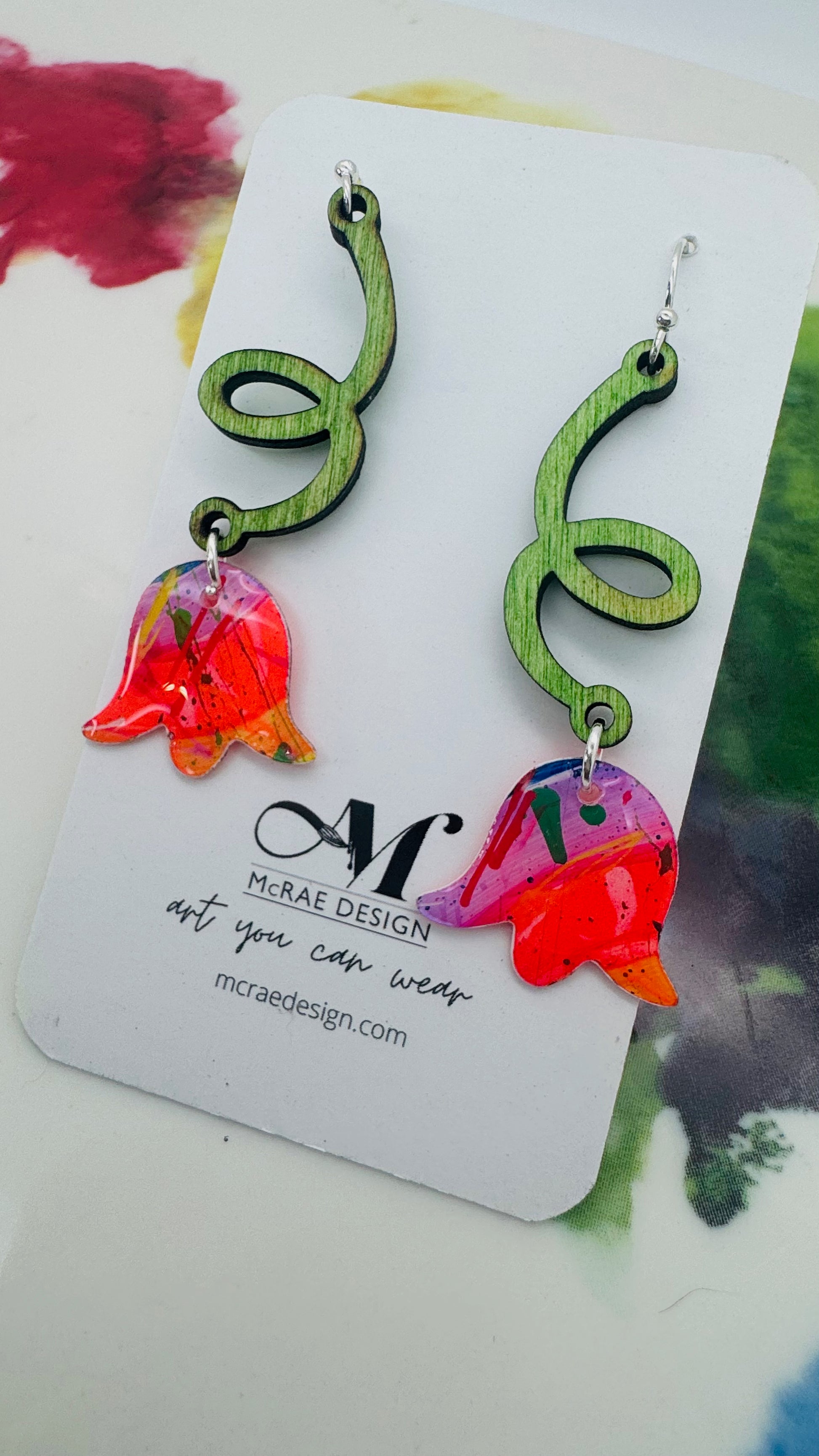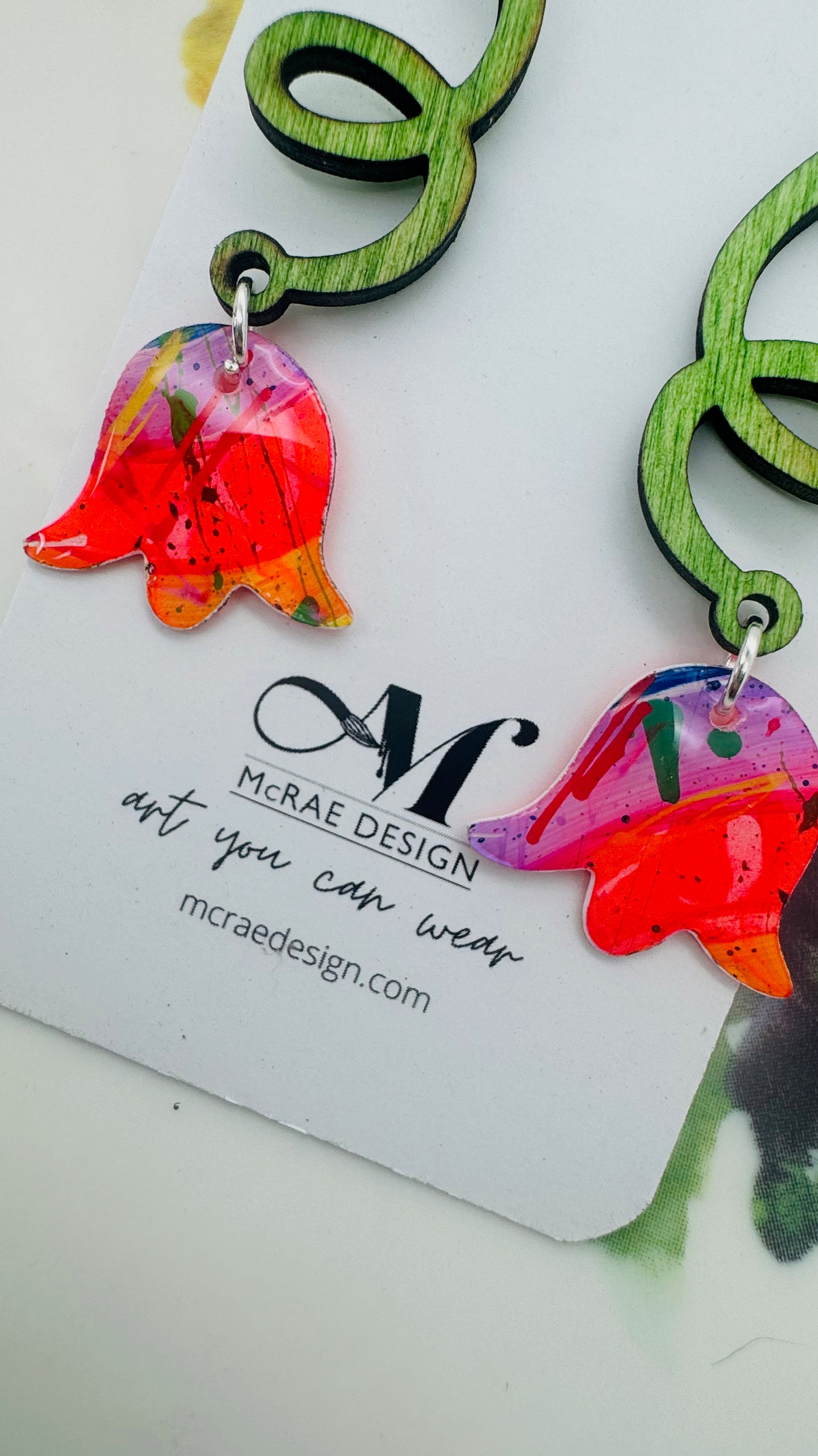 Infused with a pop art spirit, these earrings explode with a rainbow of hues—bright, punchy, and full of personality. Accents of hand-dyed wooden pieces and natural wooden beads add texture and contrast, grounding the electric palette with earthy warmth.