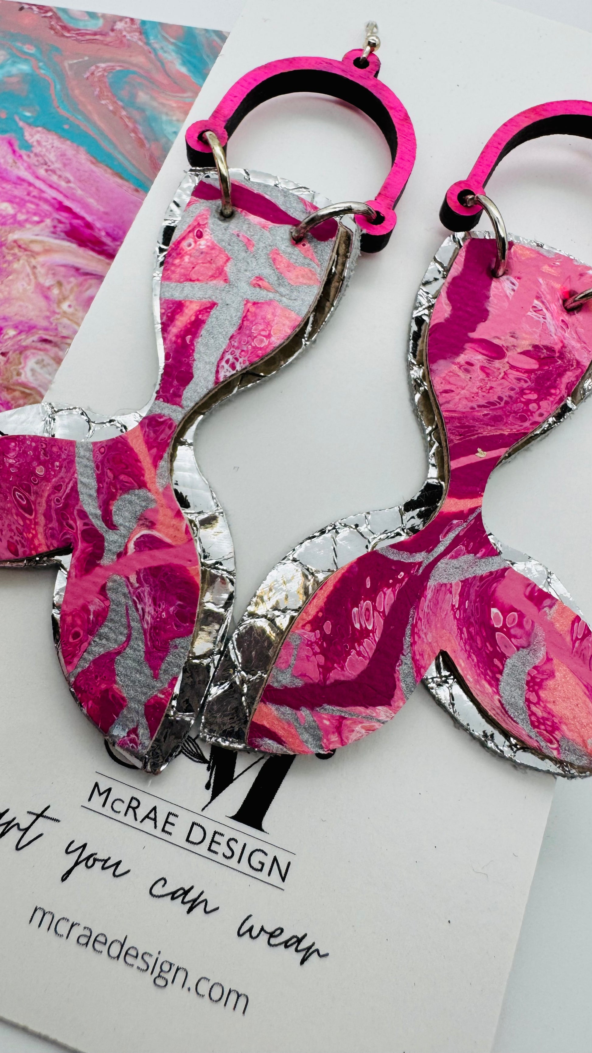 Step into a world of electric summer vibes with the "Pink Cadillac" earring collection. A perfect blend of retro nostalgia and bold, modern style, these earrings are an ode to everything fun and fearless. Each piece features hand-painted pink hues—fluorescent pink, metallic silvery pink, and just the right touch of coral and fuchsia.