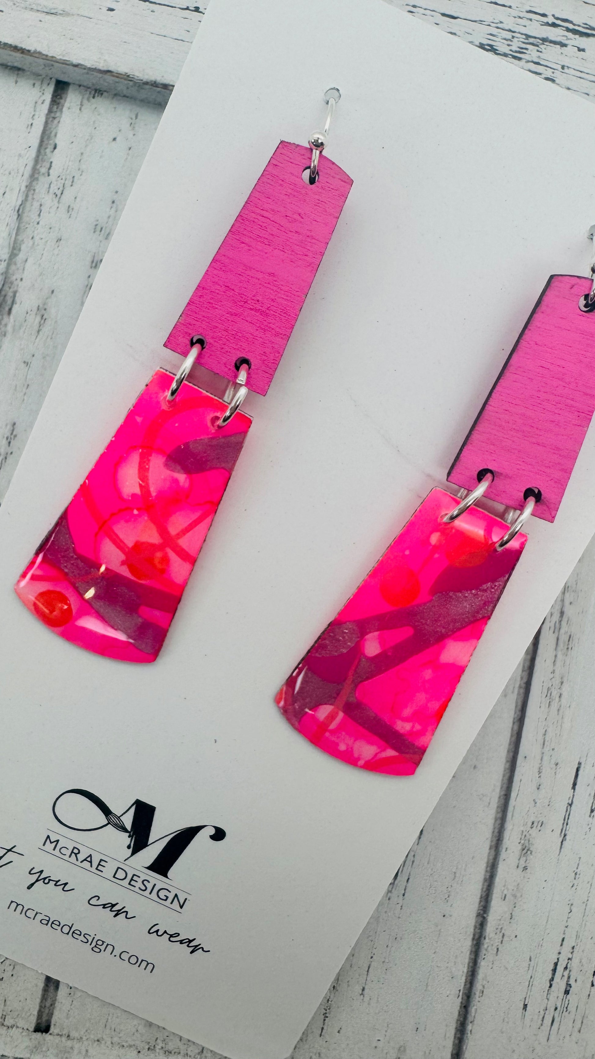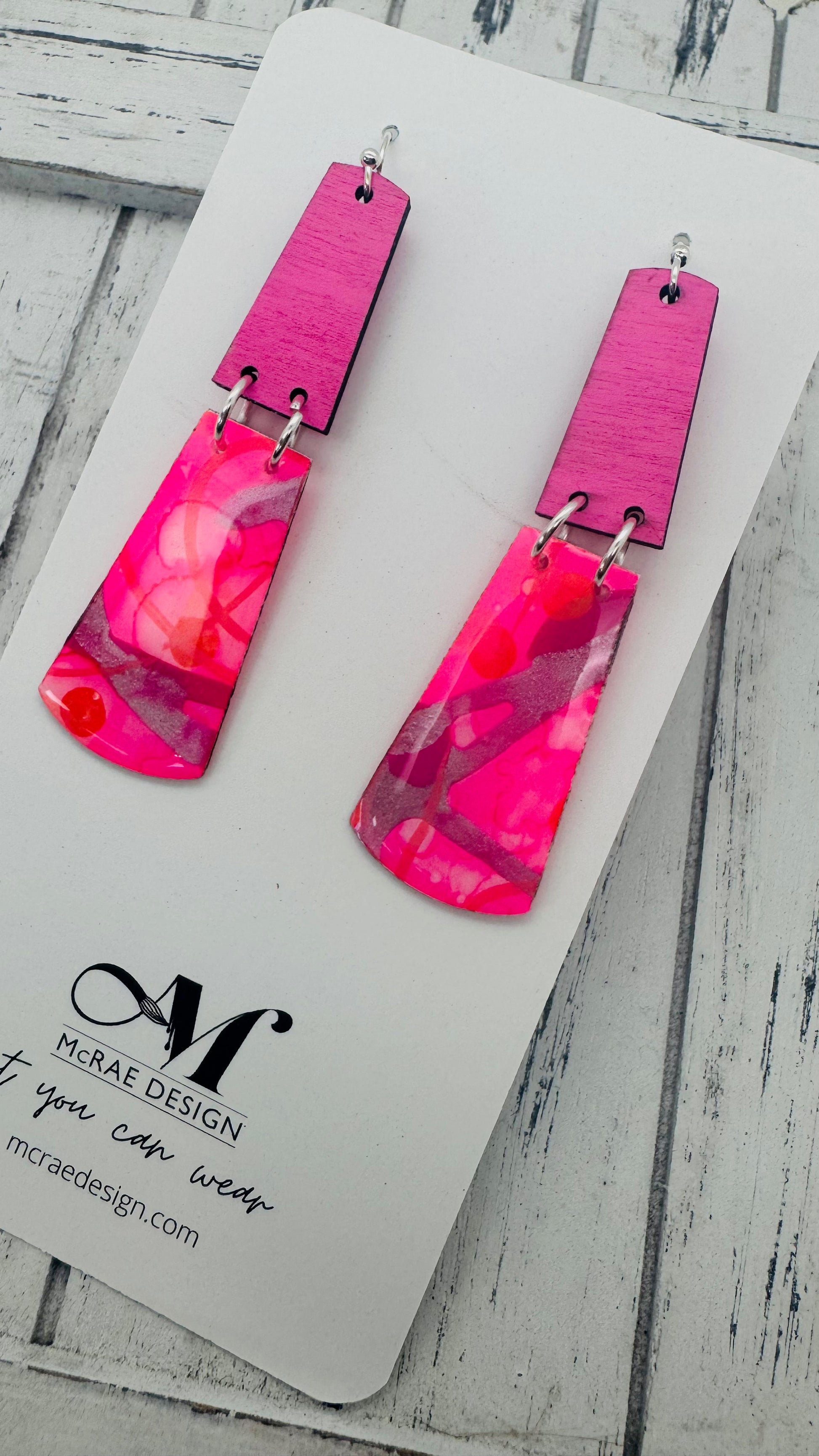 Step into a world of electric summer vibes with the "Pink Cadillac" earring collection. A perfect blend of retro nostalgia and bold, modern style, these earrings are an ode to everything fun and fearless. Each piece features hand-painted pink hues—fluorescent pink, metallic silvery pink, and just the right touch of coral and fuchsia—encased in high-gloss resin for a glossy, eye-catching finish.