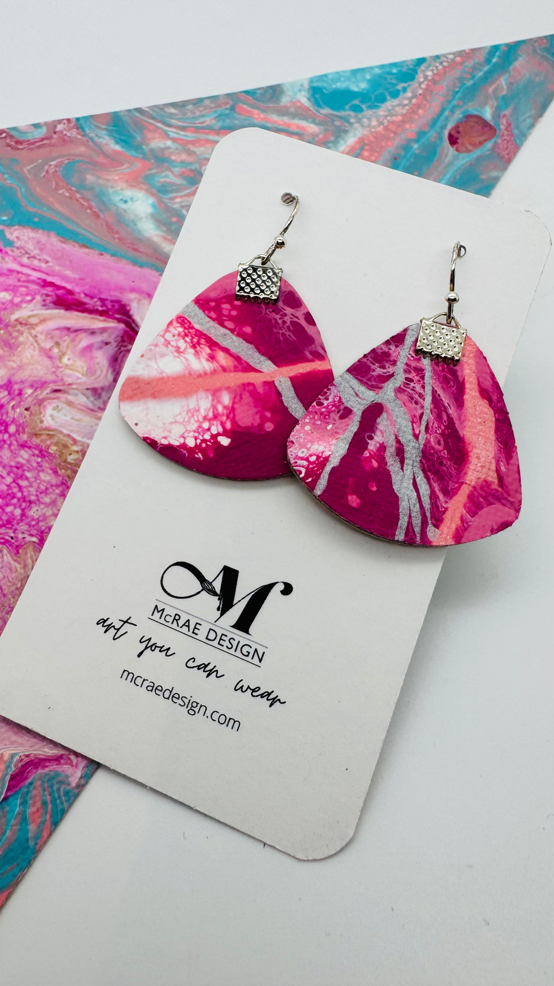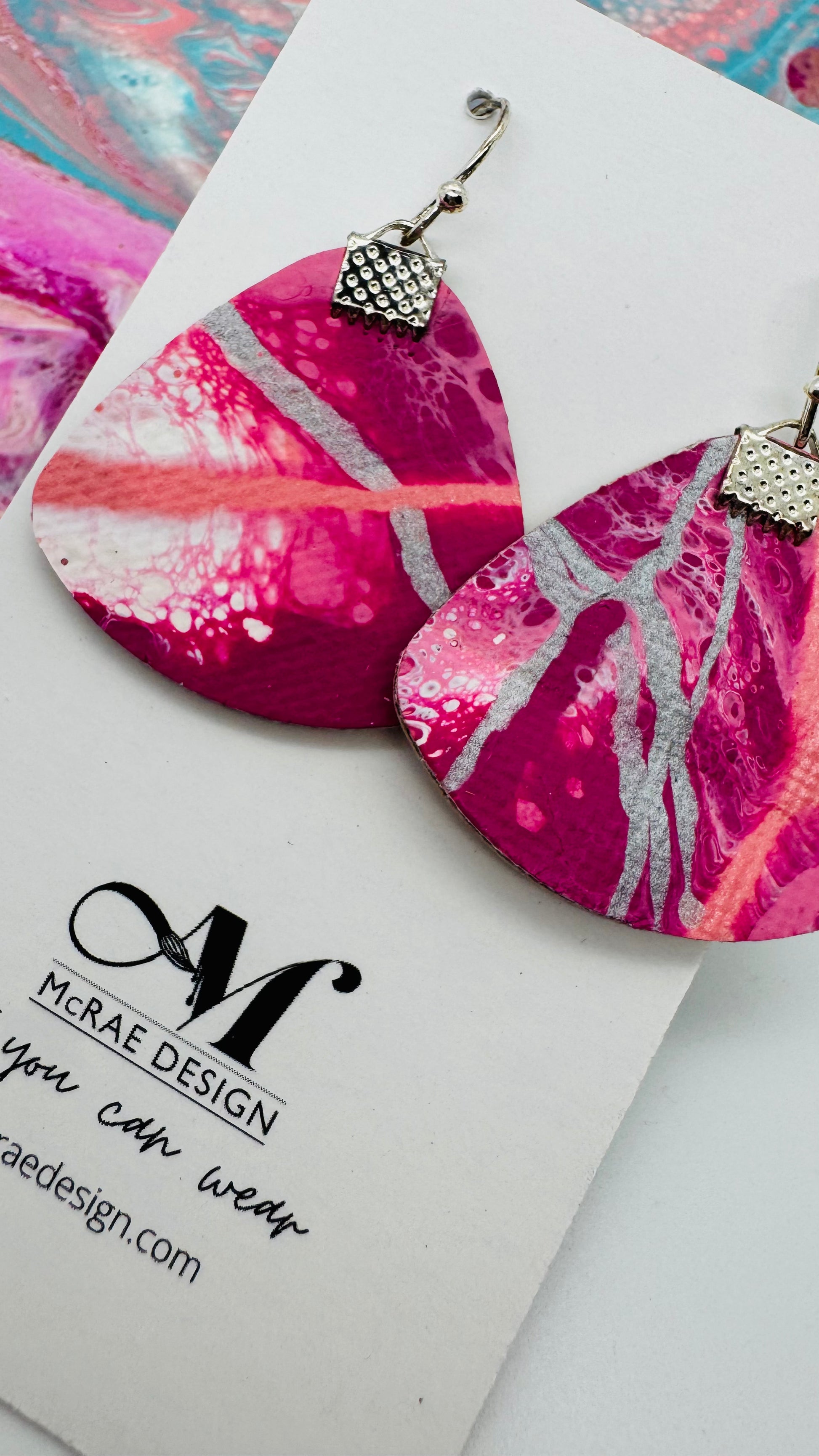 Step into a world of electric summer vibes with the "Pink Cadillac" earring collection. A perfect blend of retro nostalgia and bold, modern style, these earrings are an ode to everything fun and fearless. Each piece features hand-painted pink hues—fluorescent pink, metallic silvery pink, and just the right touch of coral and fuchsia.