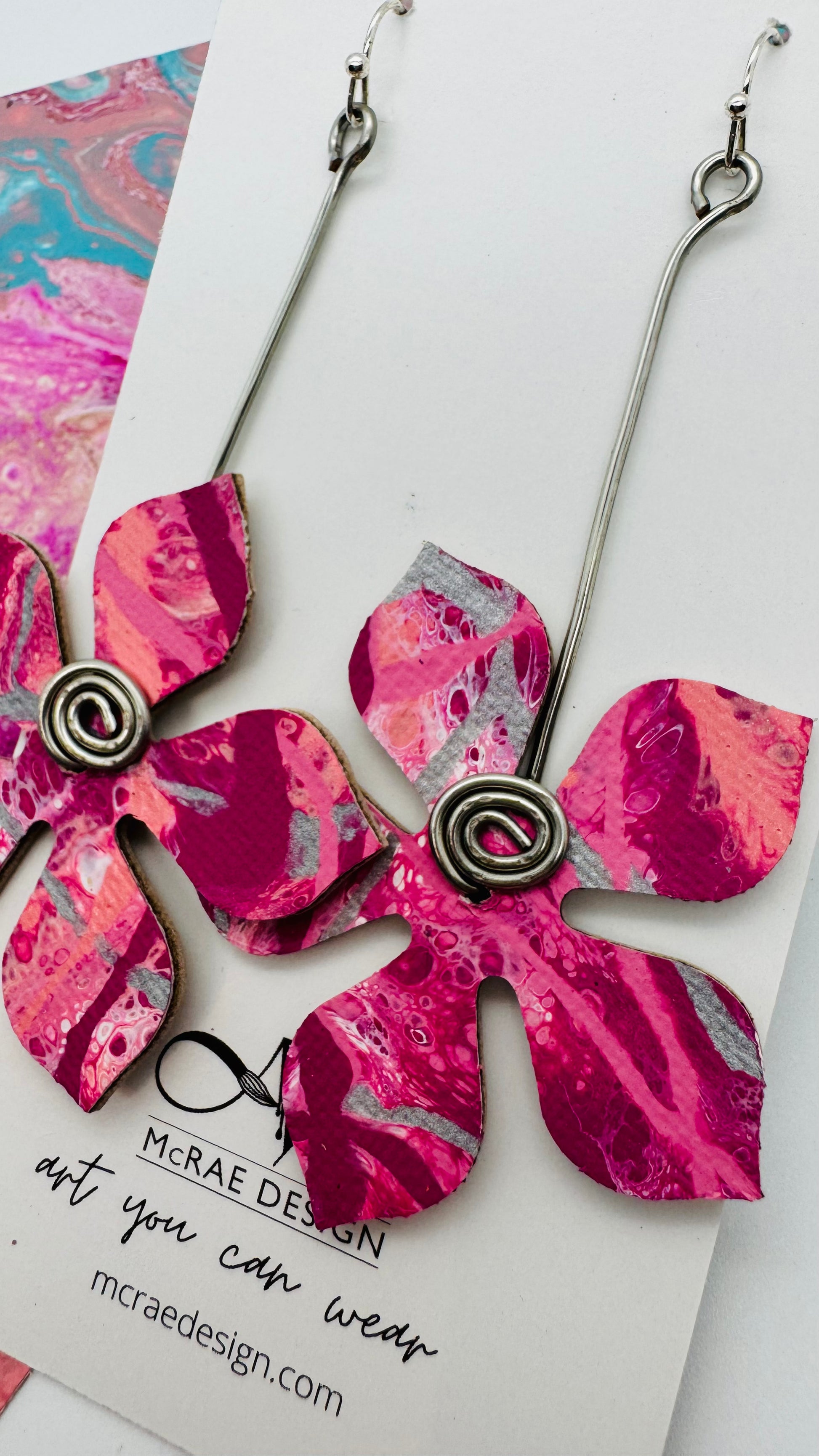Painted on CANVAS - On silver plated nickel-free hooks. Total length is approximately 3.5 inches.