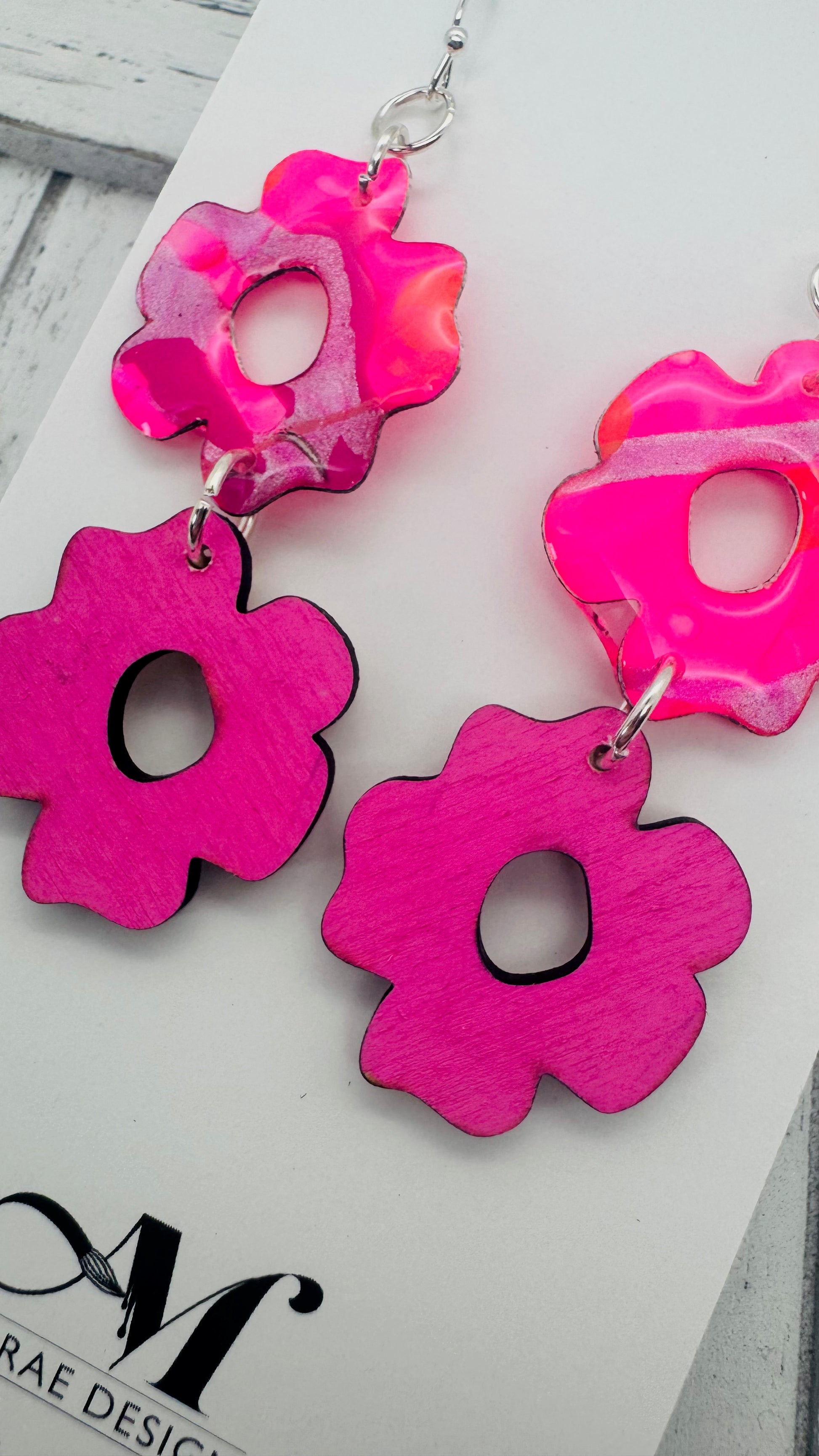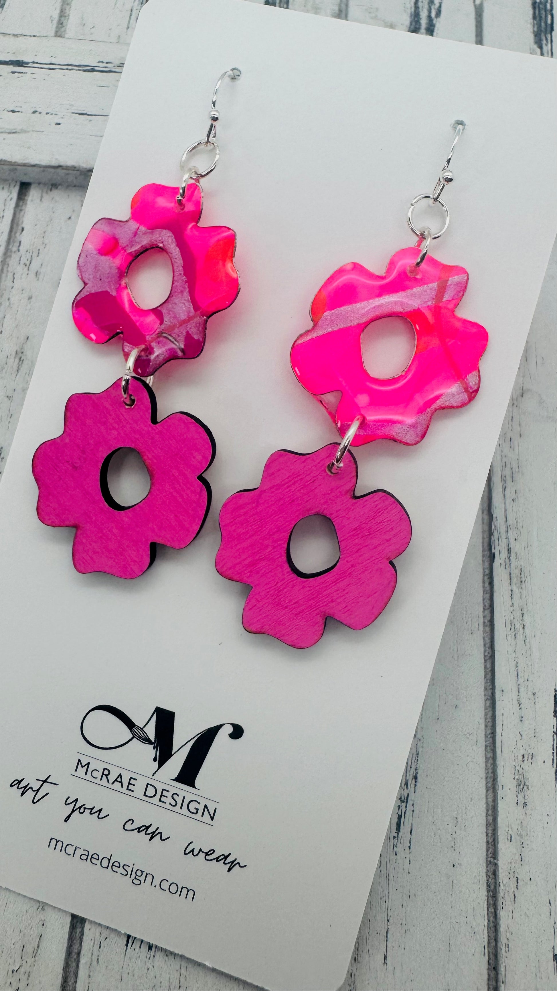 Step into a world of electric summer vibes with the "Pink Cadillac" earring collection. A perfect blend of retro nostalgia and bold, modern style, these earrings are an ode to everything fun and fearless. Each piece features hand-painted pink hues—fluorescent pink, metallic silvery pink, and just the right touch of coral and fuchsia—encased in high-gloss resin for a glossy, eye-catching finish.