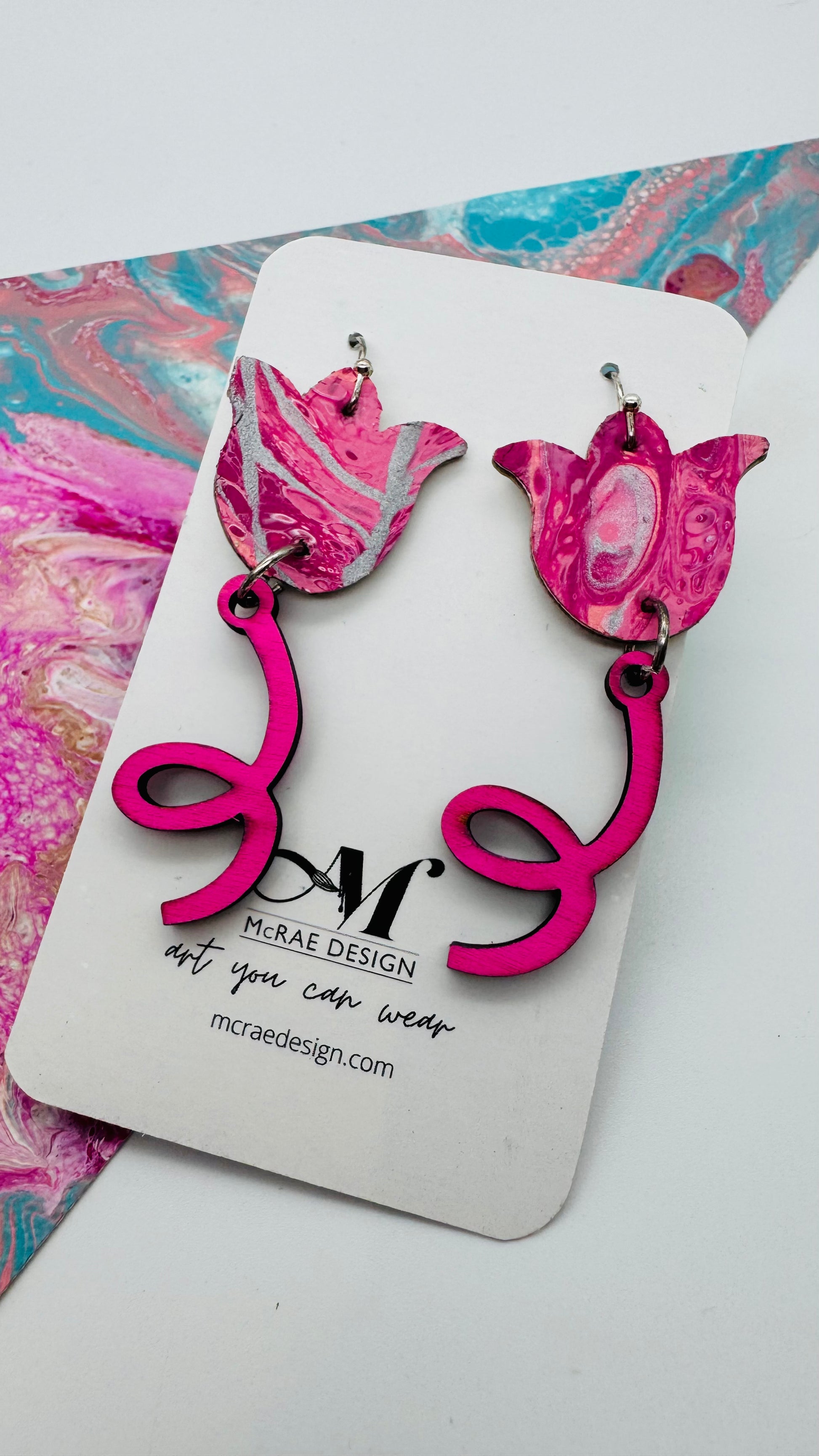Step into a world of electric summer vibes with the "Pink Cadillac" earring collection. A perfect blend of retro nostalgia and bold, modern style, these earrings are an ode to everything fun and fearless. Each piece features hand-painted pink hues—fluorescent pink, metallic silvery pink, and just the right touch of coral and fuchsia.