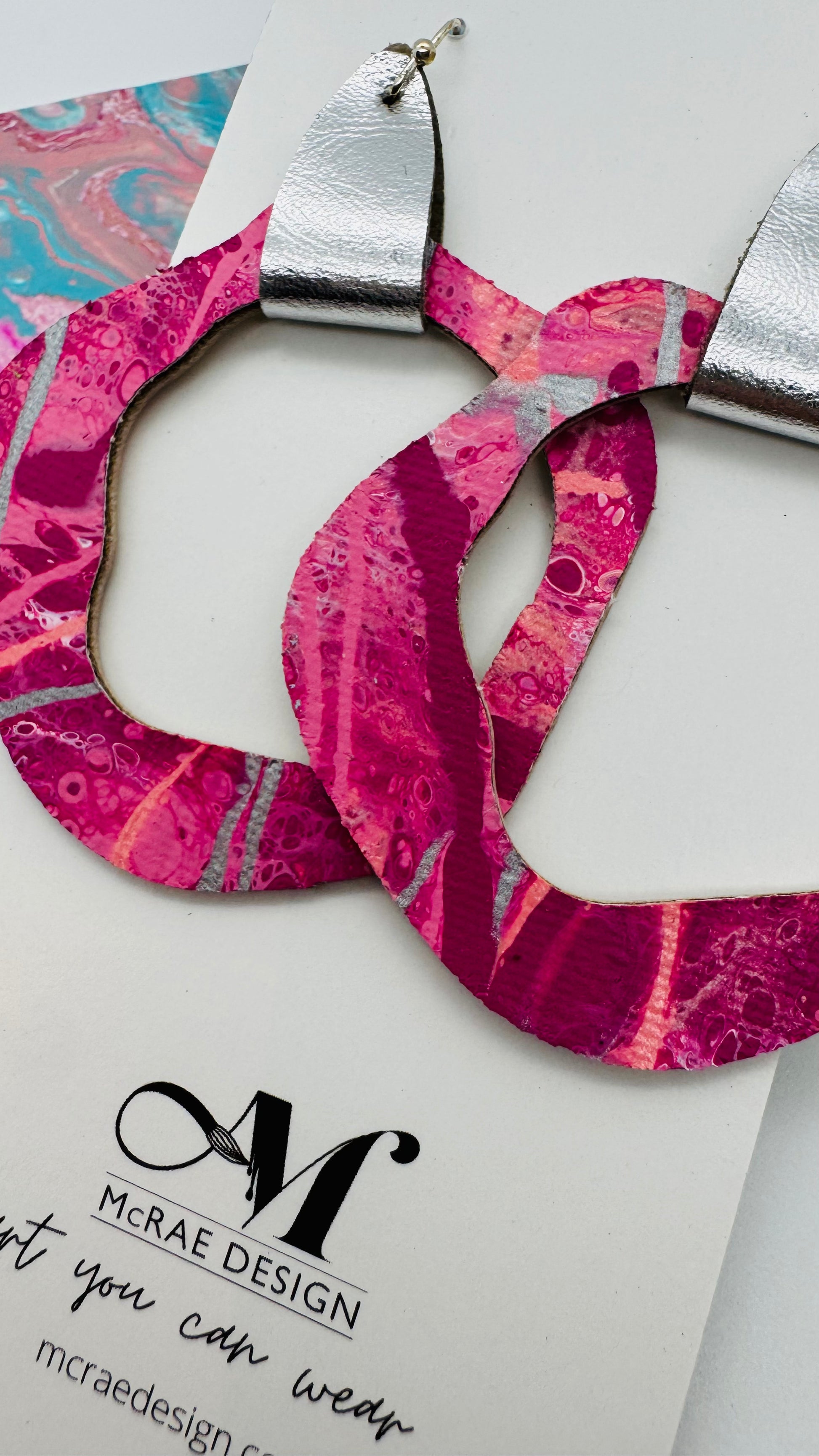 Step into a world of electric summer vibes with the "Pink Cadillac" earring collection. A perfect blend of retro nostalgia and bold, modern style, these earrings are an ode to everything fun and fearless. Each piece features hand-painted pink hues—fluorescent pink, metallic silvery pink, and just the right touch of coral and fuchsia.