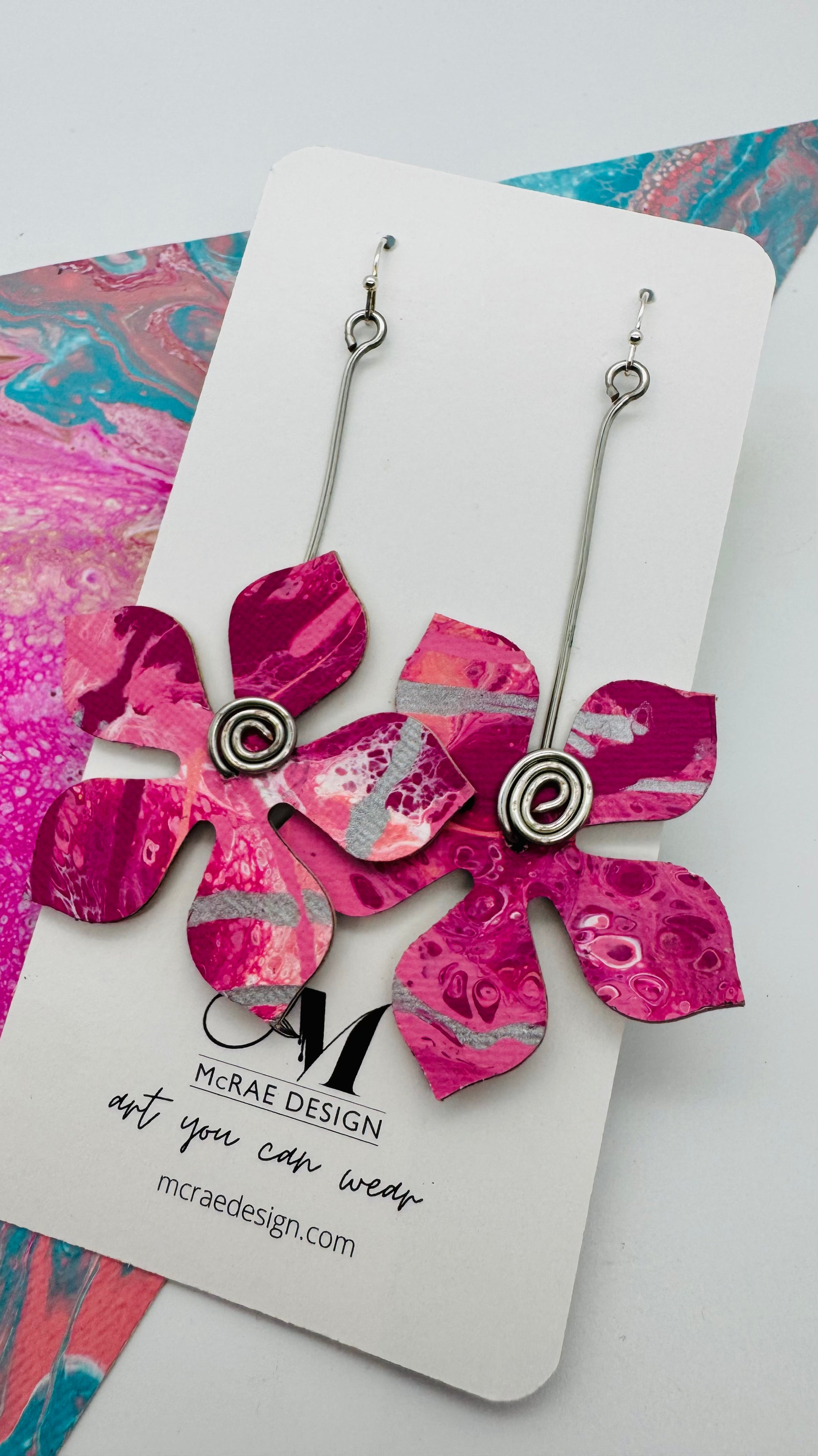 Painted on CANVAS - On silver plated nickel-free hooks. Total length is approximately 3.5 inches.