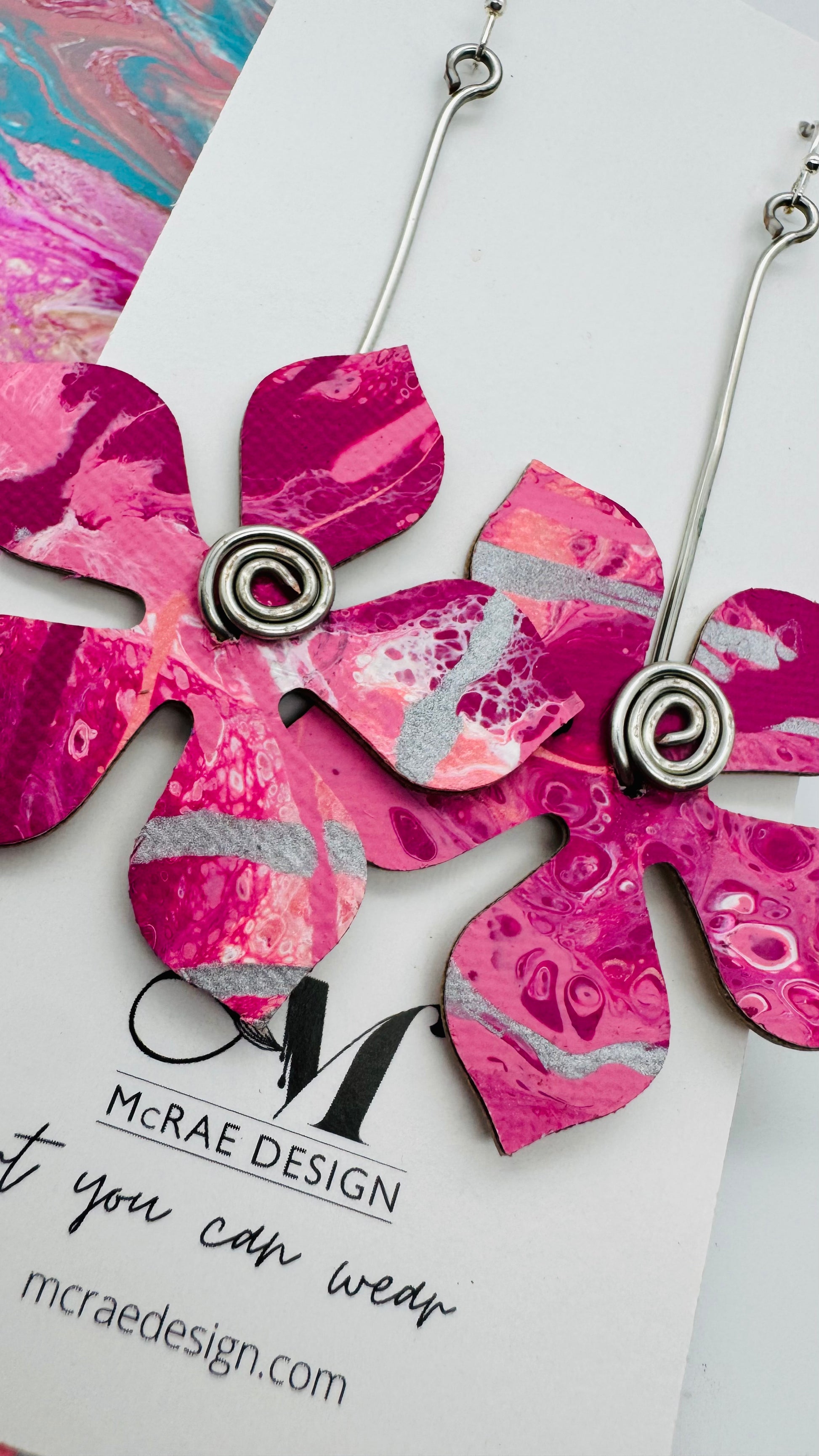 Step into a world of electric summer vibes with the "Pink Cadillac" earring collection. A perfect blend of retro nostalgia and bold, modern style, these earrings are an ode to everything fun and fearless. Each piece features hand-painted pink hues—fluorescent pink, metallic silvery pink, and just the right touch of coral and fuchsia.