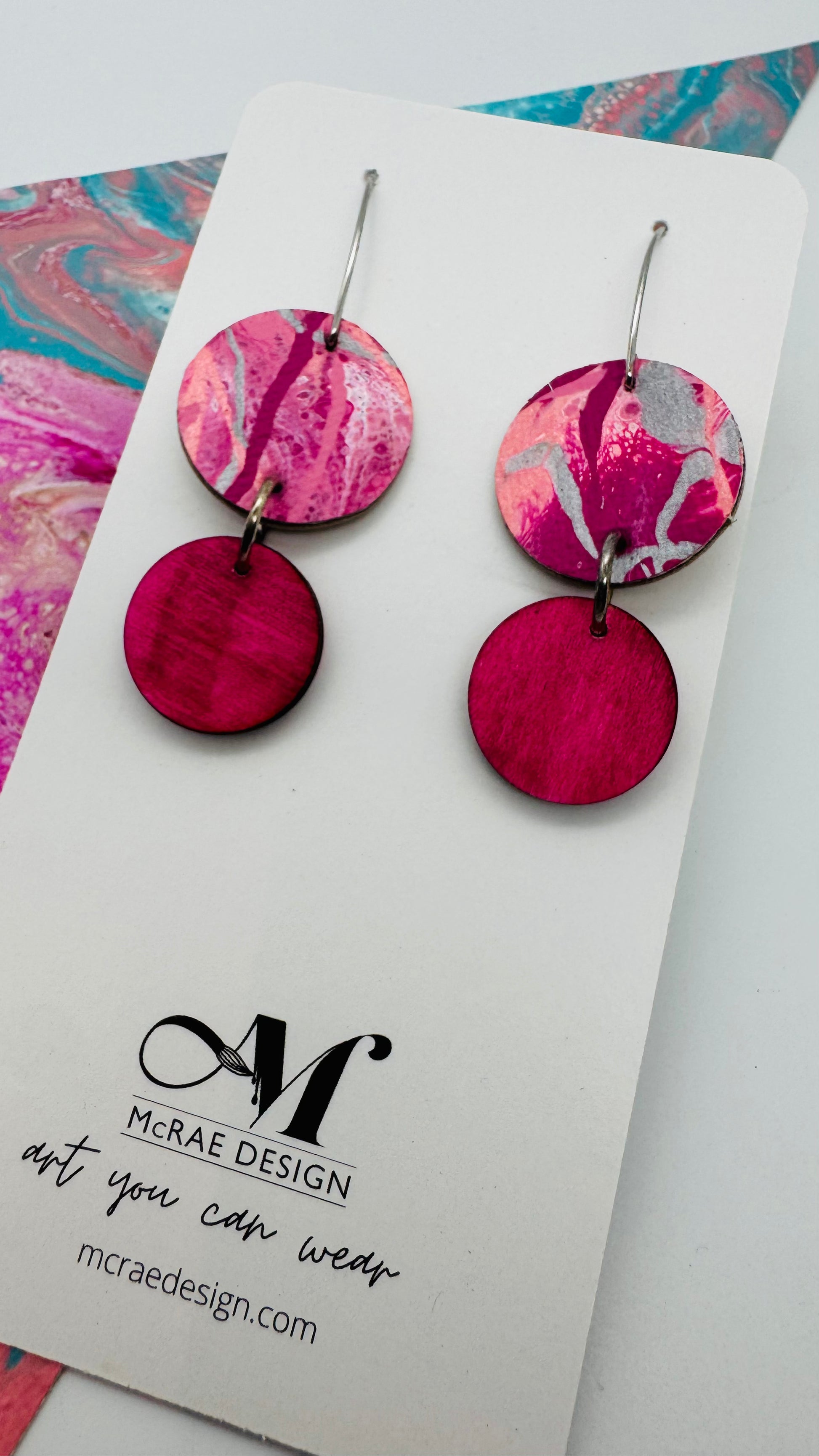 Step into a world of electric summer vibes with the "Pink Cadillac" earring collection. A perfect blend of retro nostalgia and bold, modern style, these earrings are an ode to everything fun and fearless. Each piece features hand-painted pink hues—fluorescent pink, metallic silvery pink, and just the right touch of coral and fuchsia.