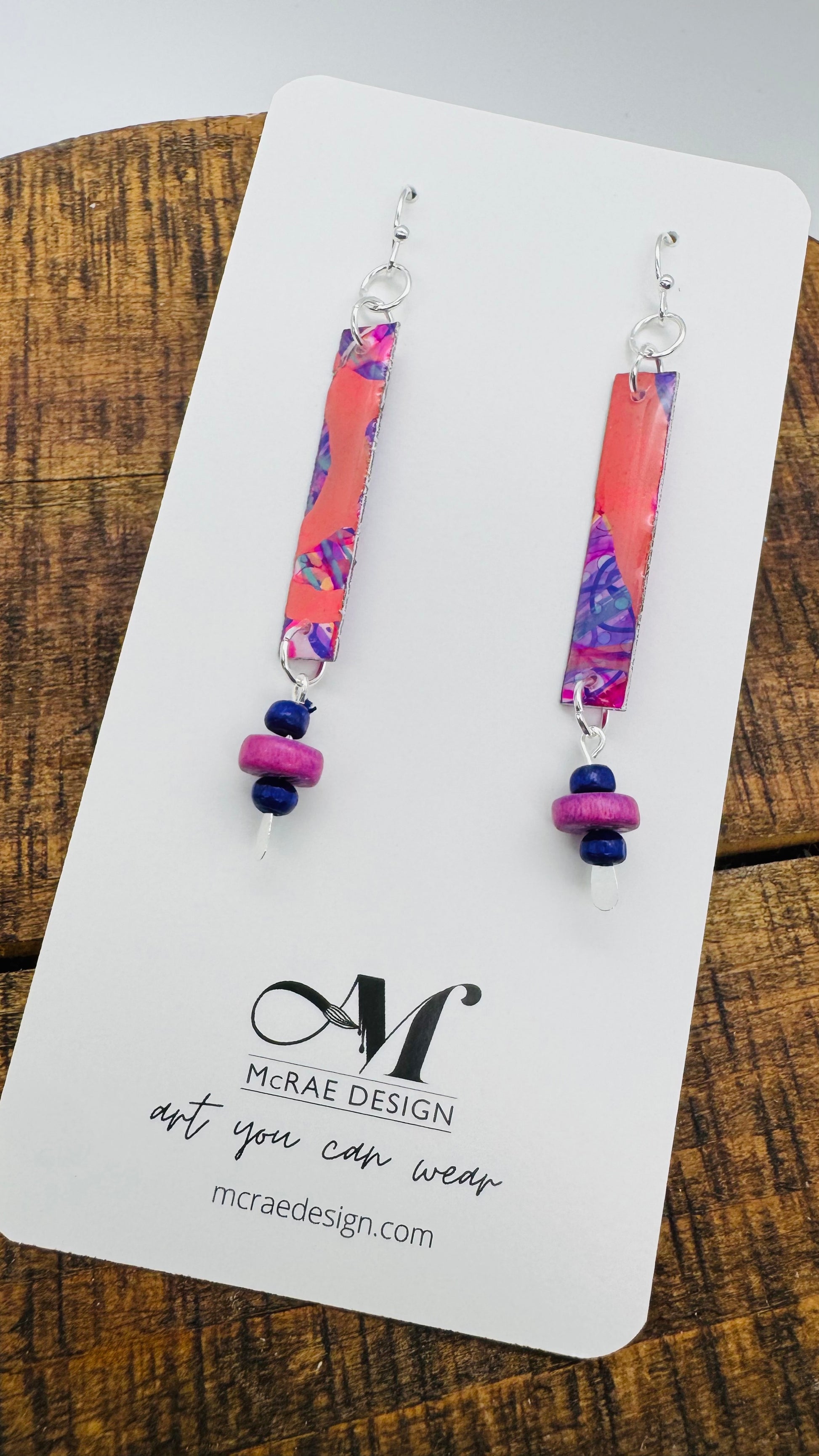 Step into a kaleidoscope of color with the Purple Haze Collection. Each earring is hand-painted on paper and sealed in resin and transformed into a one-of-a-kind work of art, blending vibrant purples, pinks, corals, and playful patterns.
