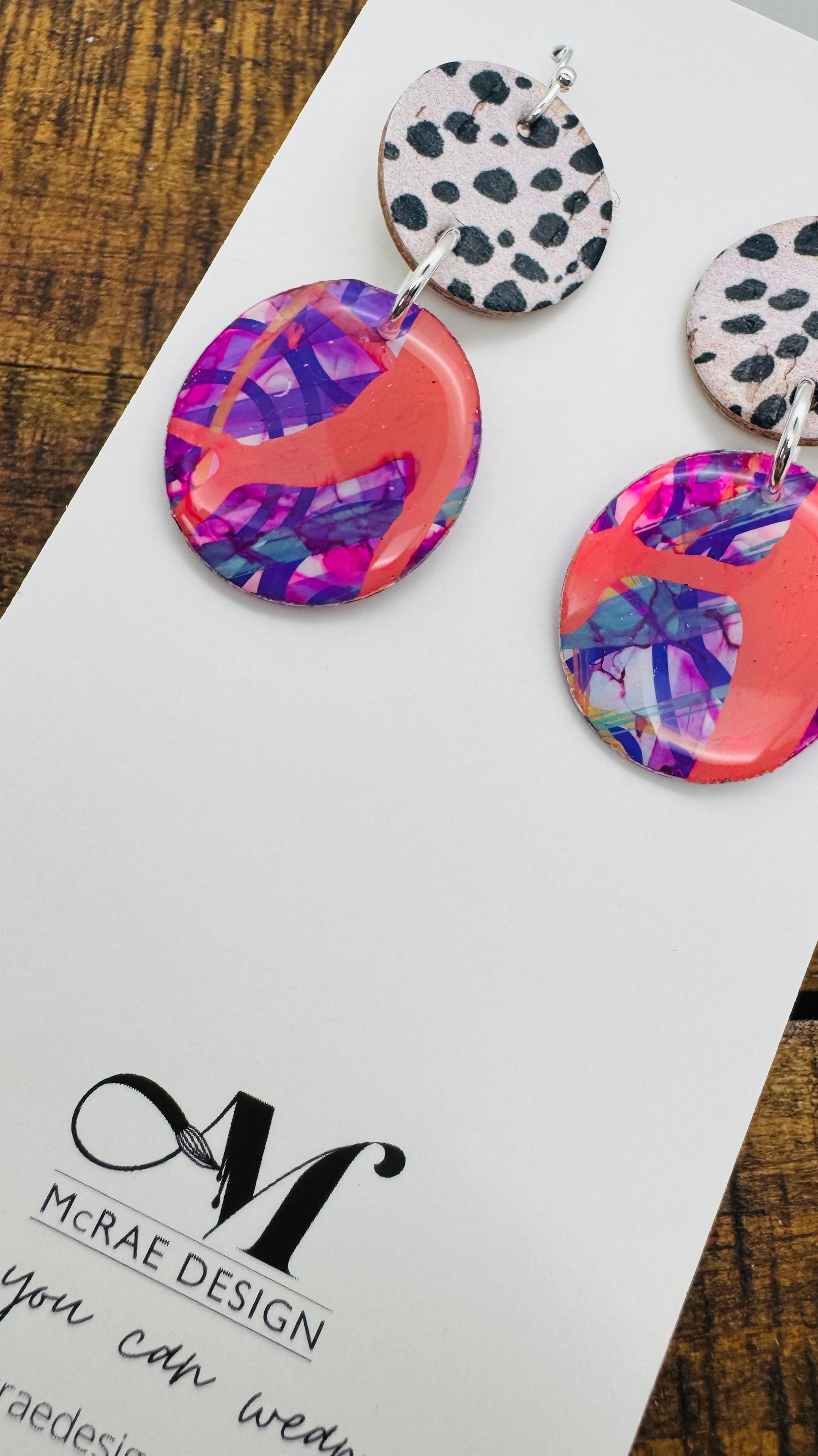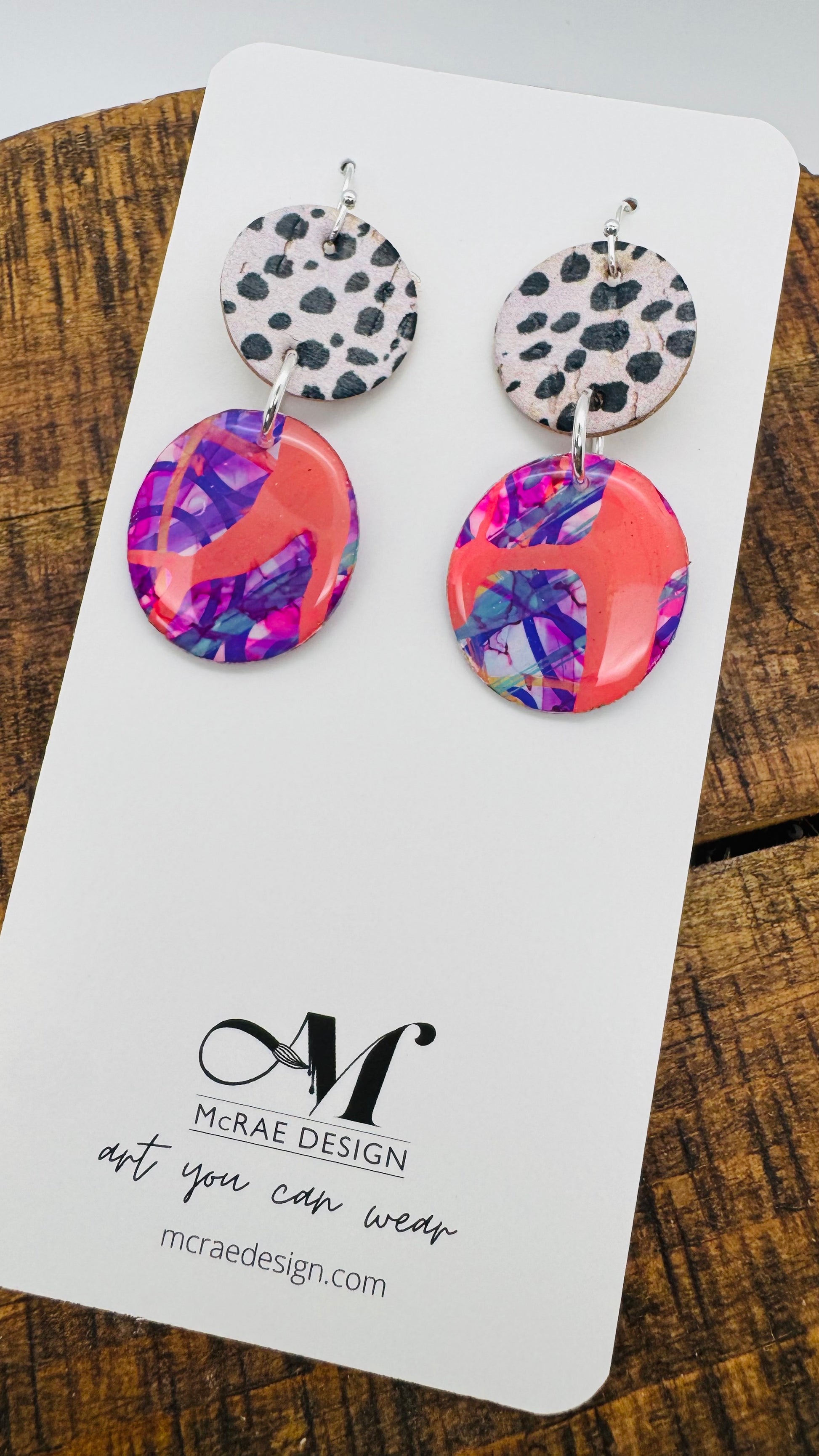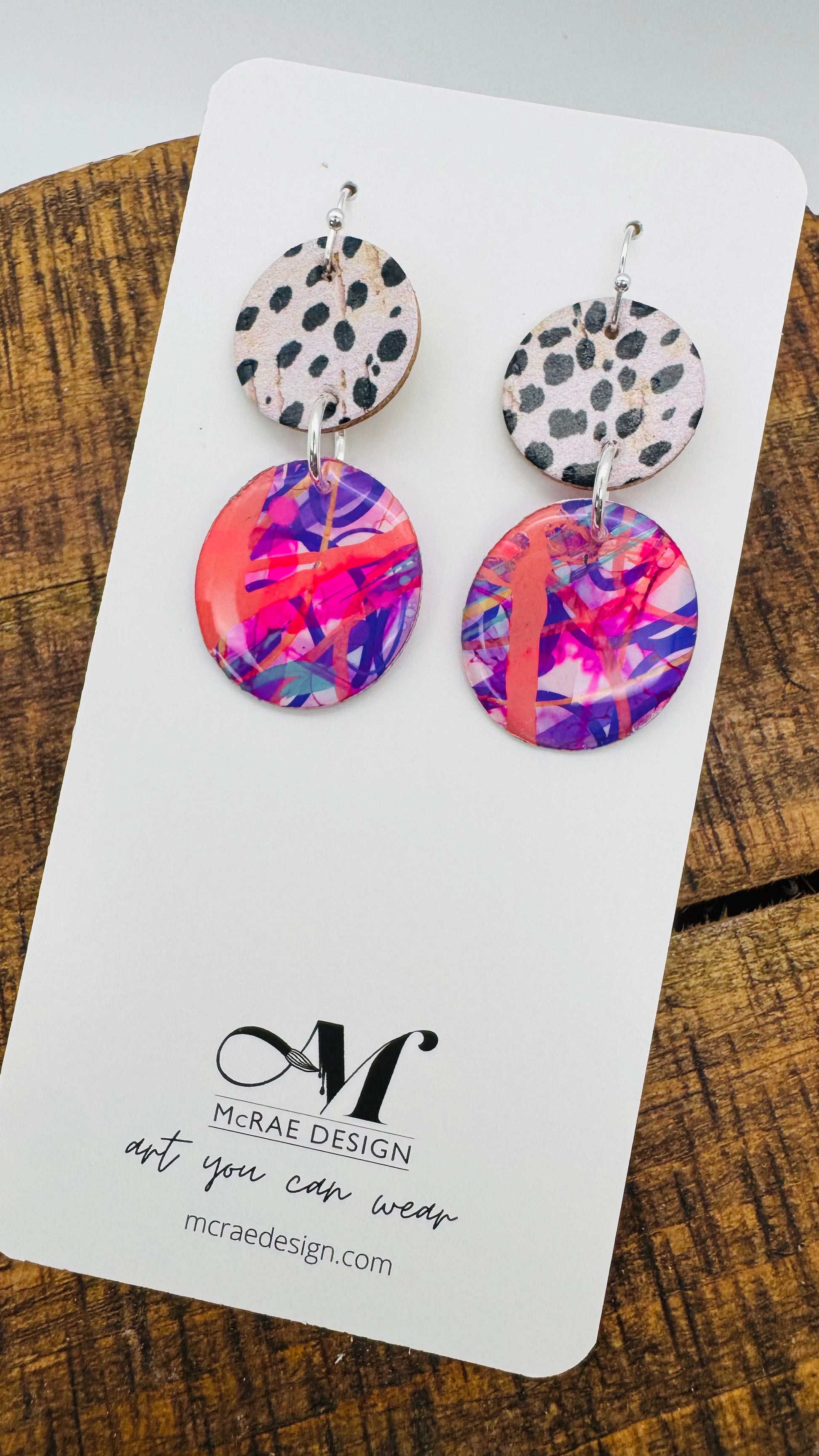 Step into a kaleidoscope of color with the Purple Haze Collection. Each earring is hand-painted on paper and sealed in resin and transformed into a one-of-a-kind work of art, blending vibrant purples, pinks, corals, and playful patterns.