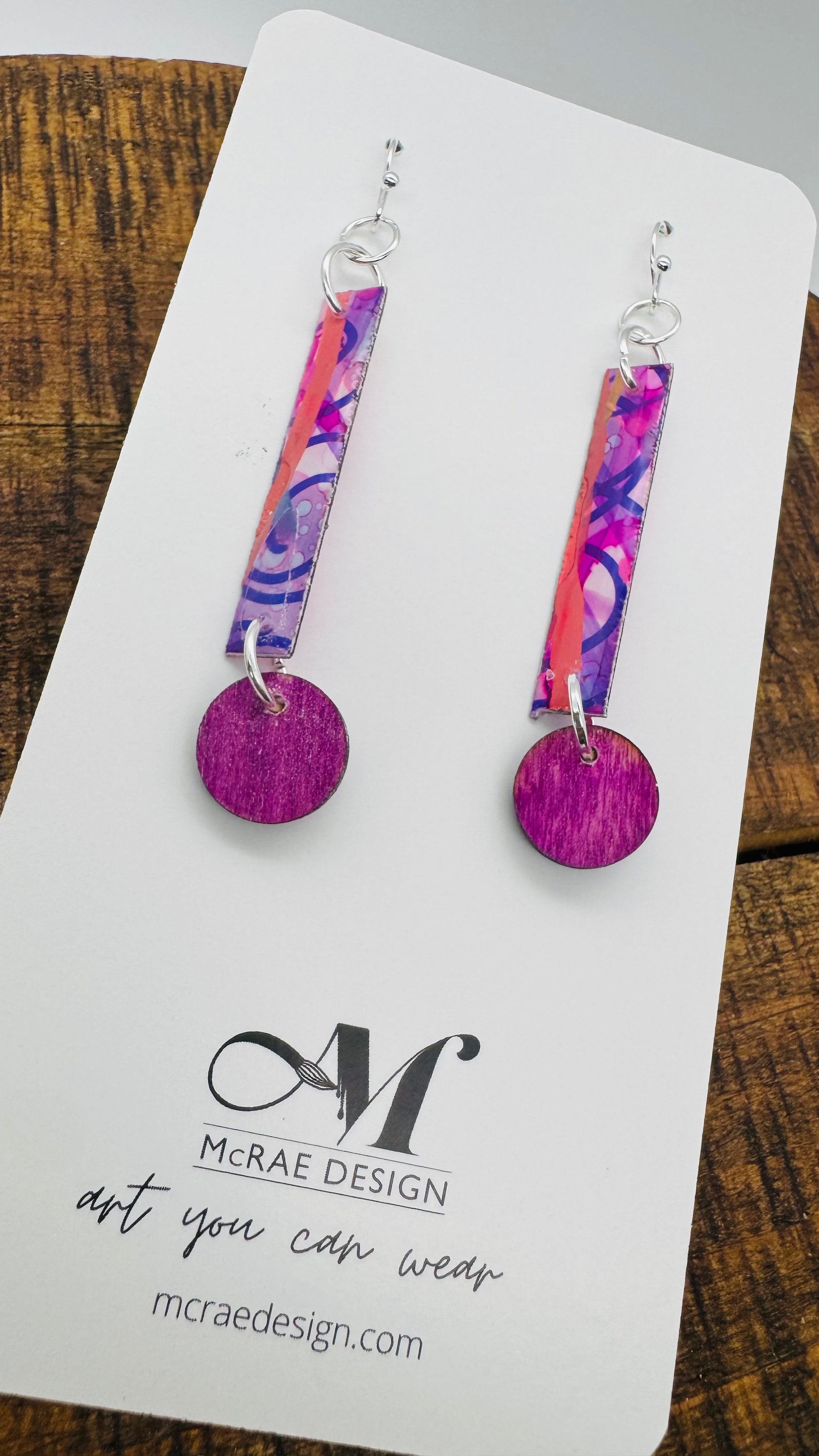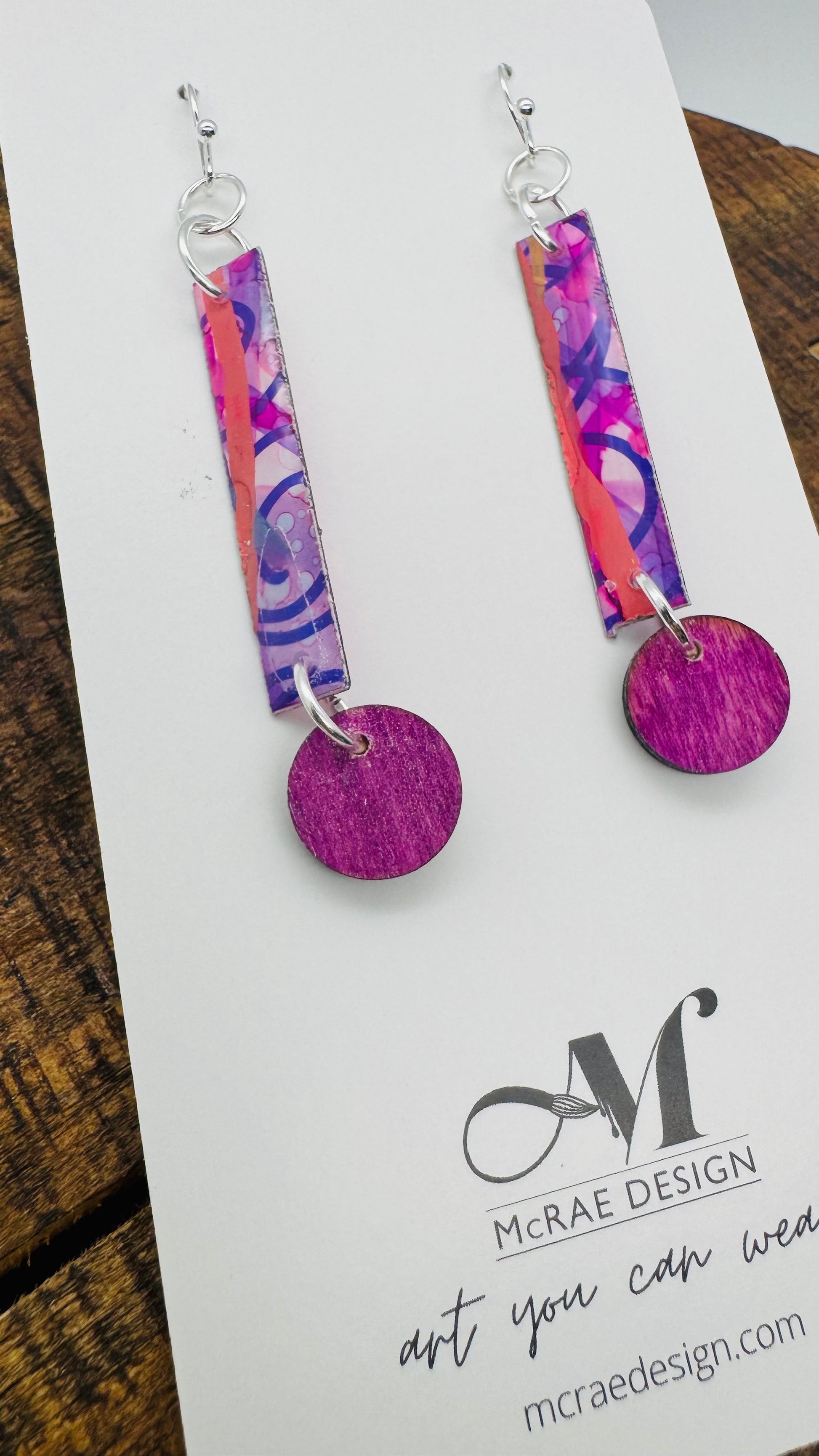 Step into a kaleidoscope of color with the Purple Haze Collection. Each earring is hand-painted on paper and sealed in resin and transformed into a one-of-a-kind work of art, blending vibrant purples, pinks, corals, and playful patterns.