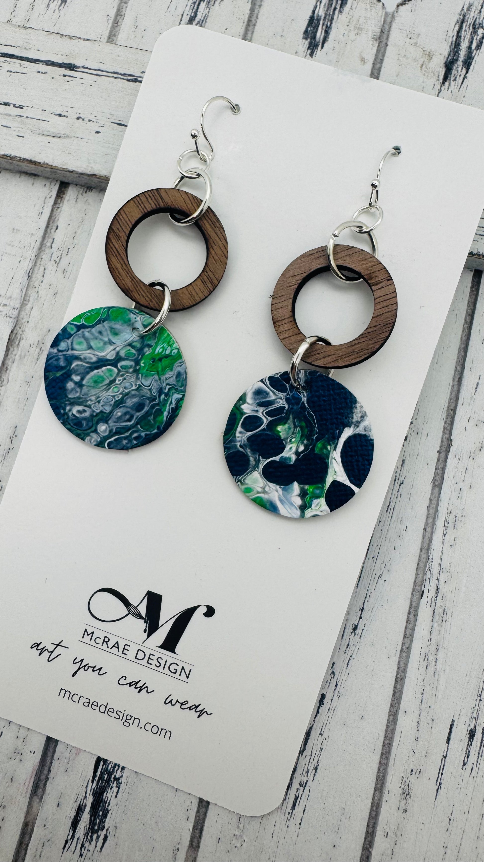 Meet Surfer Girl — a dreamy, salt-kissed collection of wearable art inspired by the shimmer of ocean waves and the nostalgia of endless summer days. Every pair begins as a hand-painted canvas, then carefully cut into oceanic silhouettes like mermaid tails, turtles, and sand dollars. With metallic navy blues, vibrant kelly greens, soft Carolina blue, and bright whites, these earrings echo the rhythm of tides and the sparkle of sunlight on the sea.