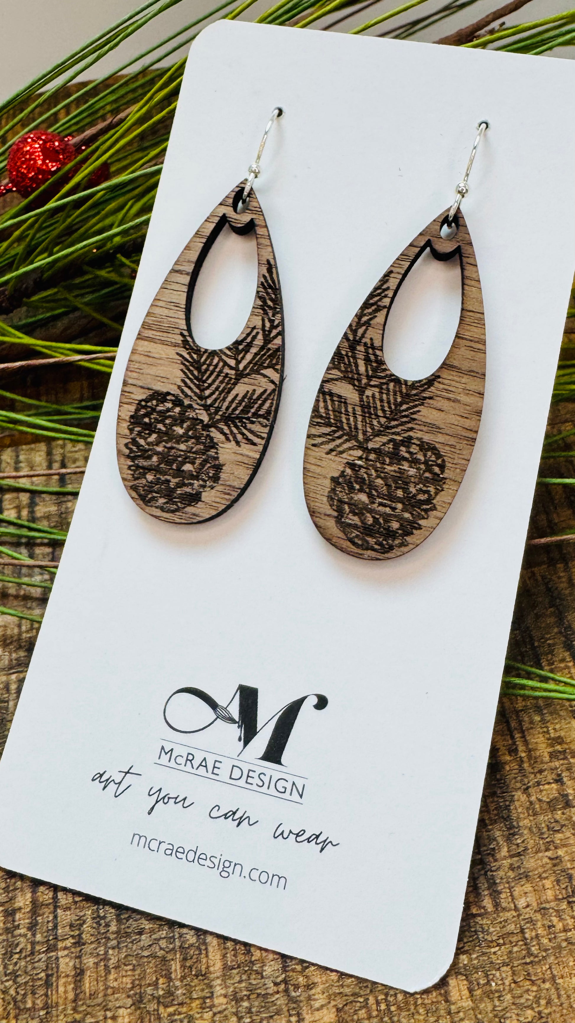 Painted on Black Walnut engraved. On silver plated hook. Total length is approximately 2.5 inches.