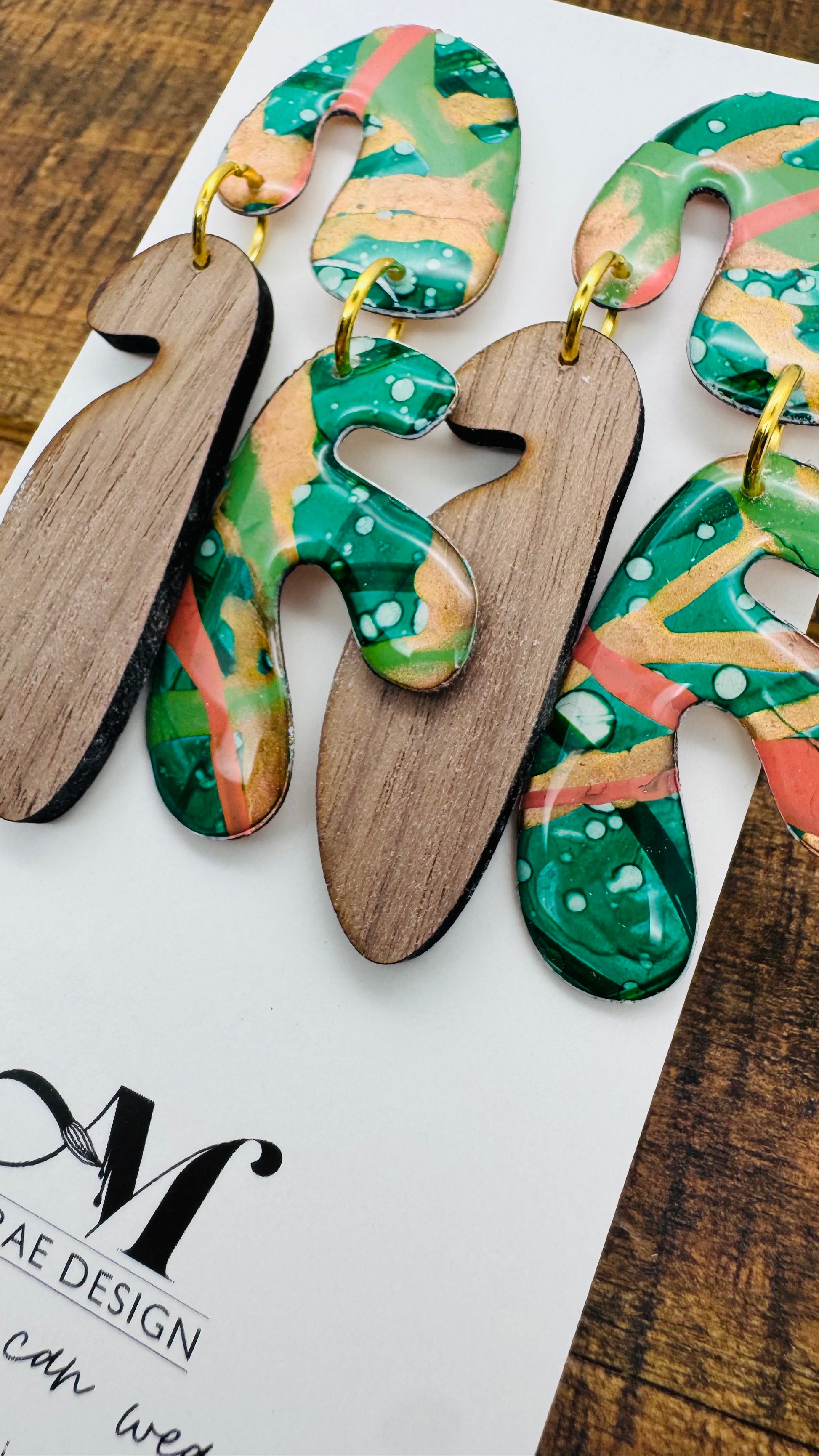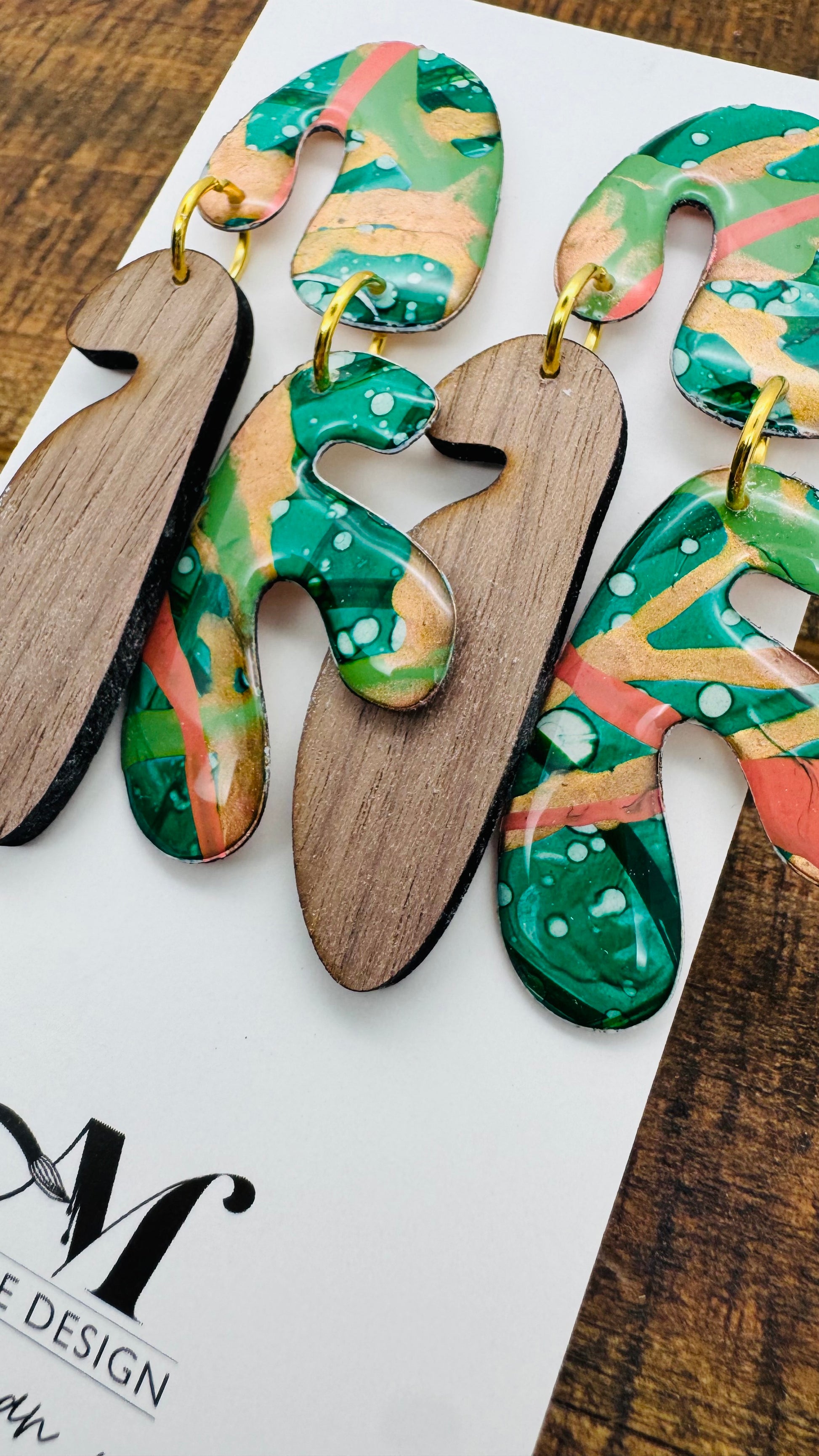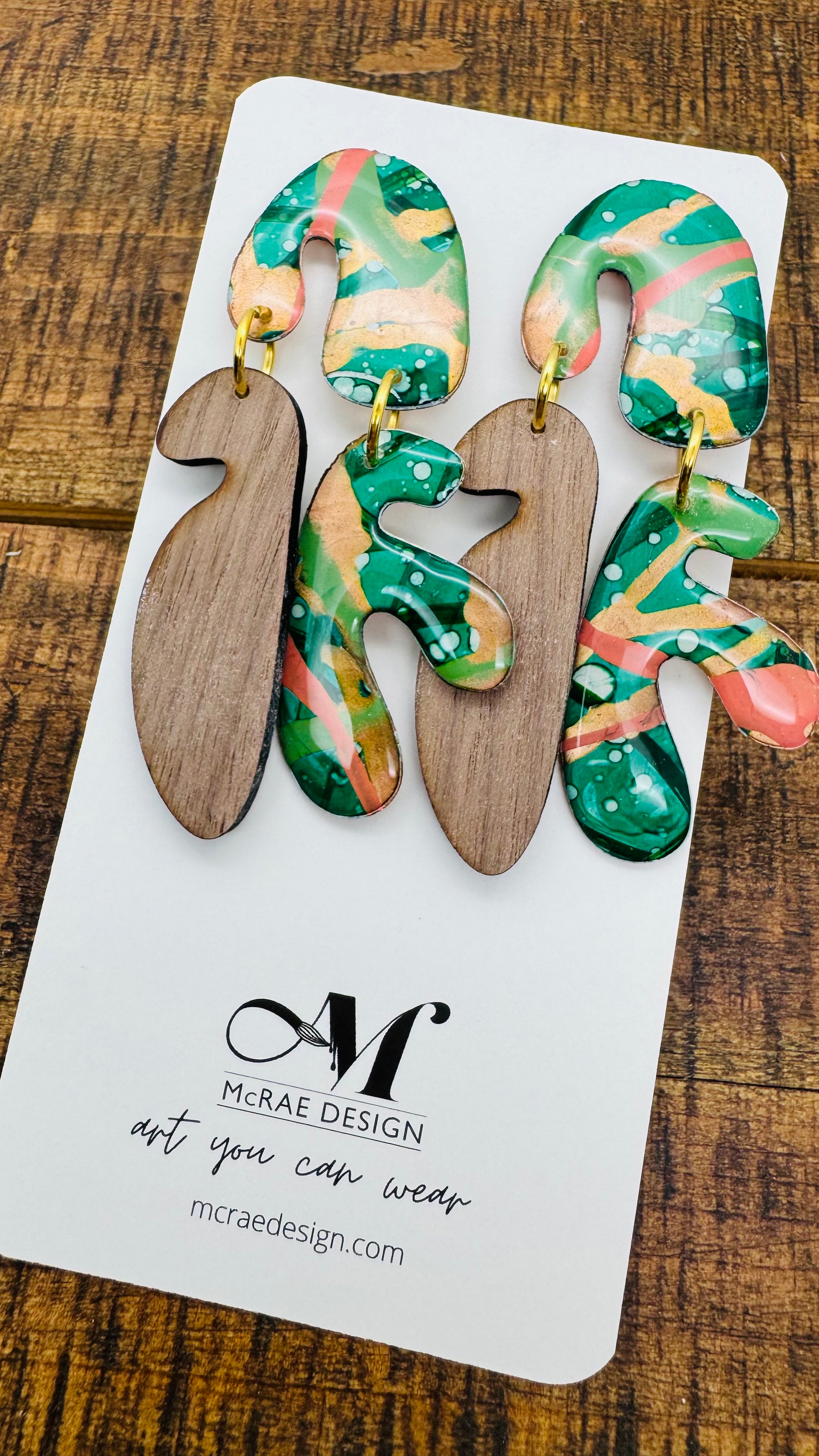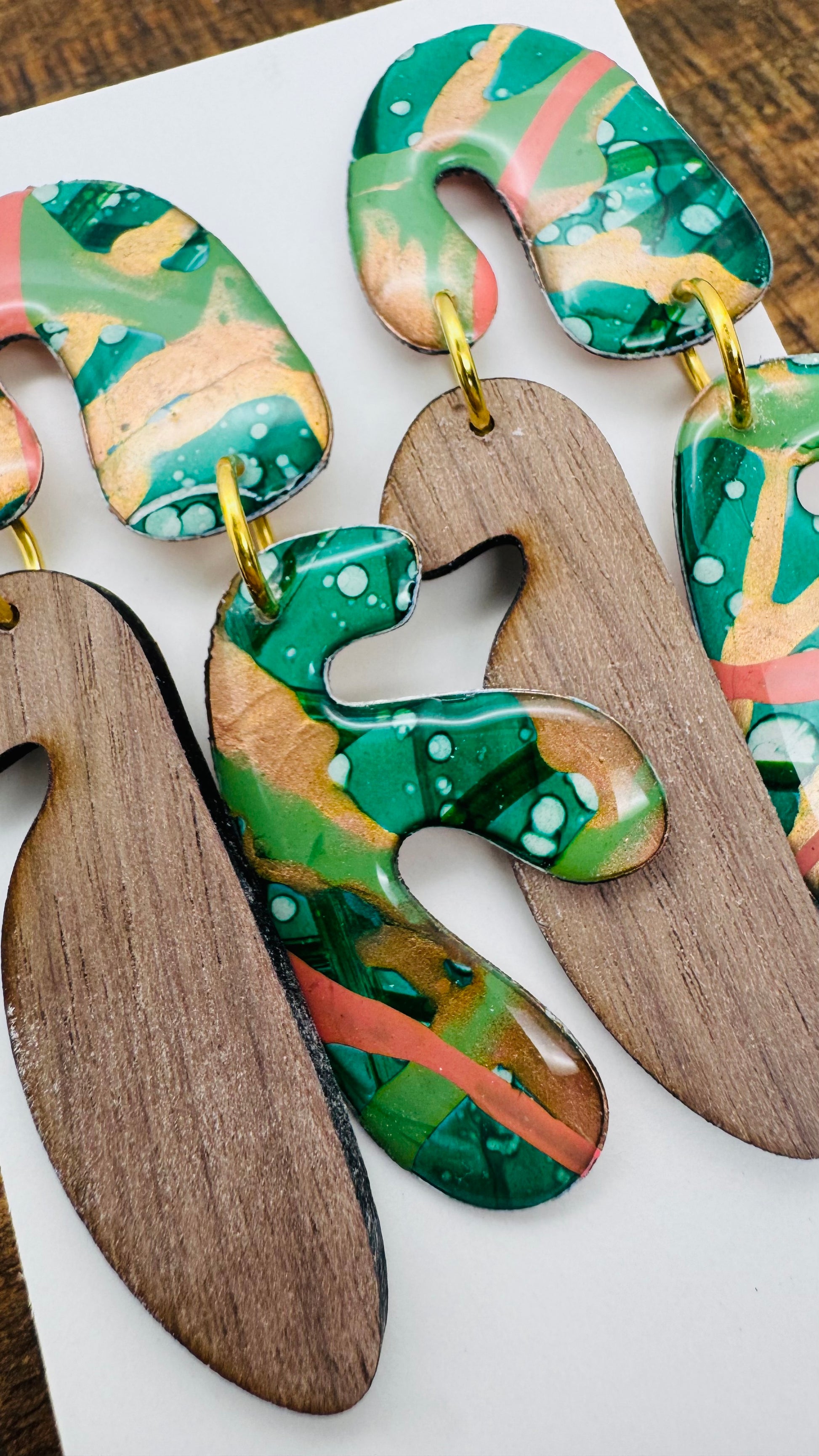 The Woodland Whimsy collection captures the magic of the forest in every detail. Each piece begins as an original painting on paper, alive with vibrant colors and organic textures. These artworks are then hand-cut into delicate leaf shapes and paired with the natural elegance of laser-cut black walnut. The fusion of painted patterns with the rich grain of wood creates jewelry that feels both modern and timeless—an homage to autumn’s beauty and nature’s artistry.