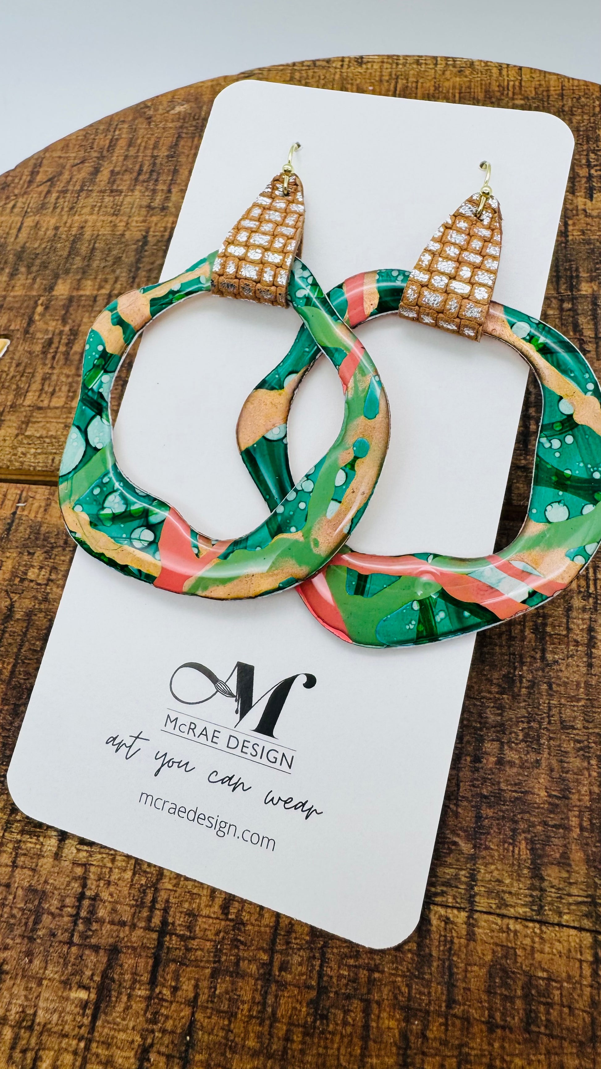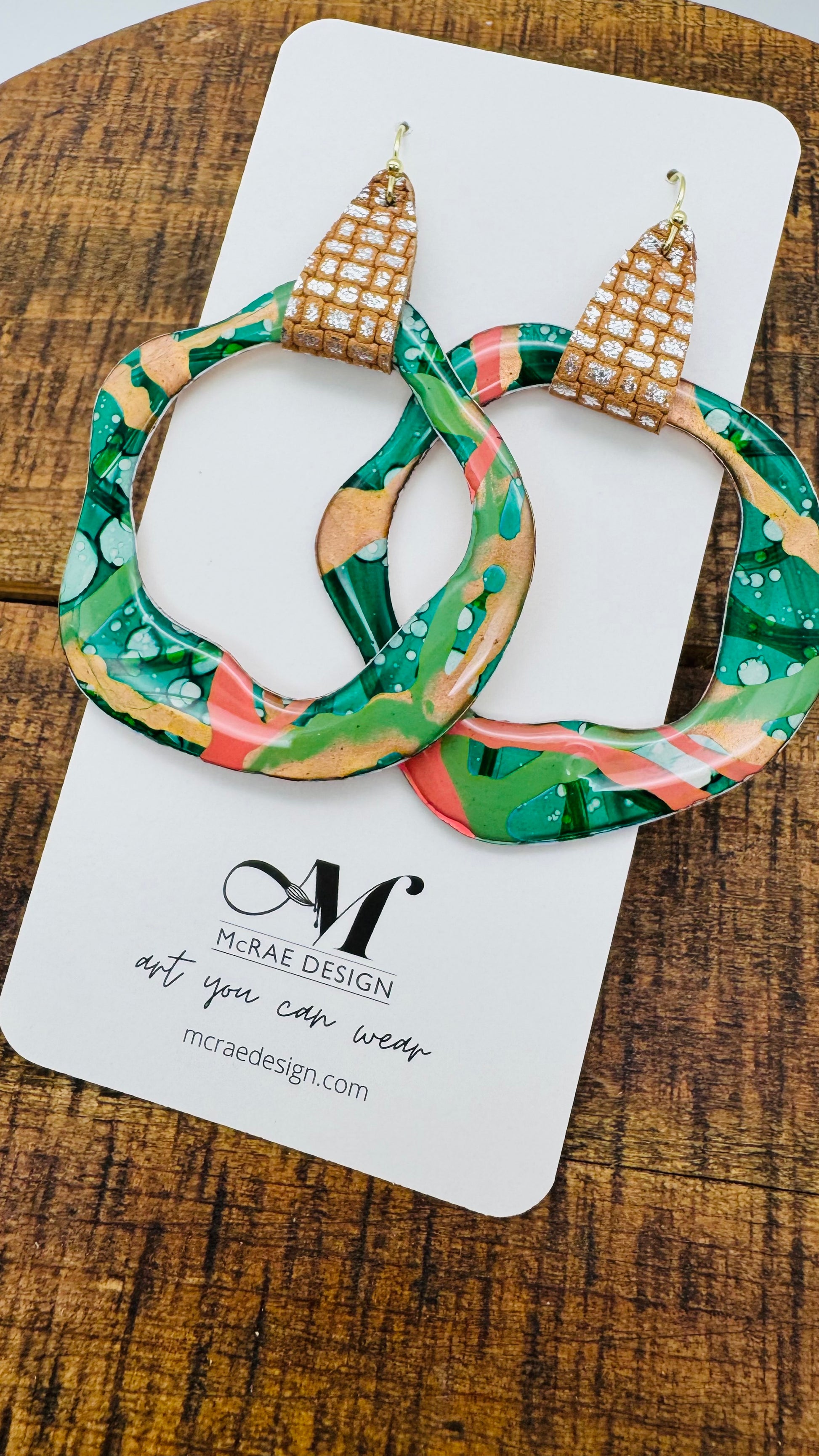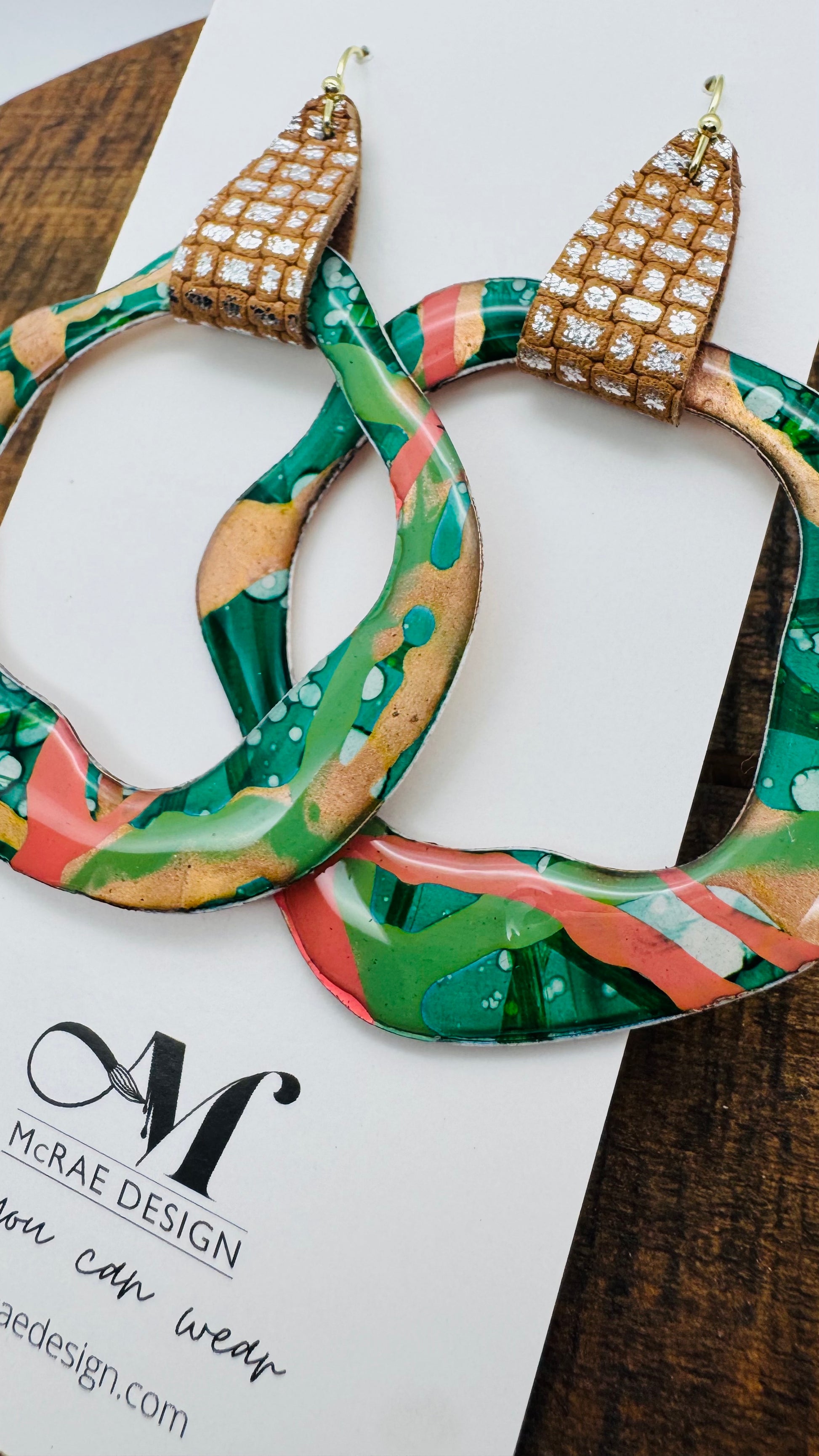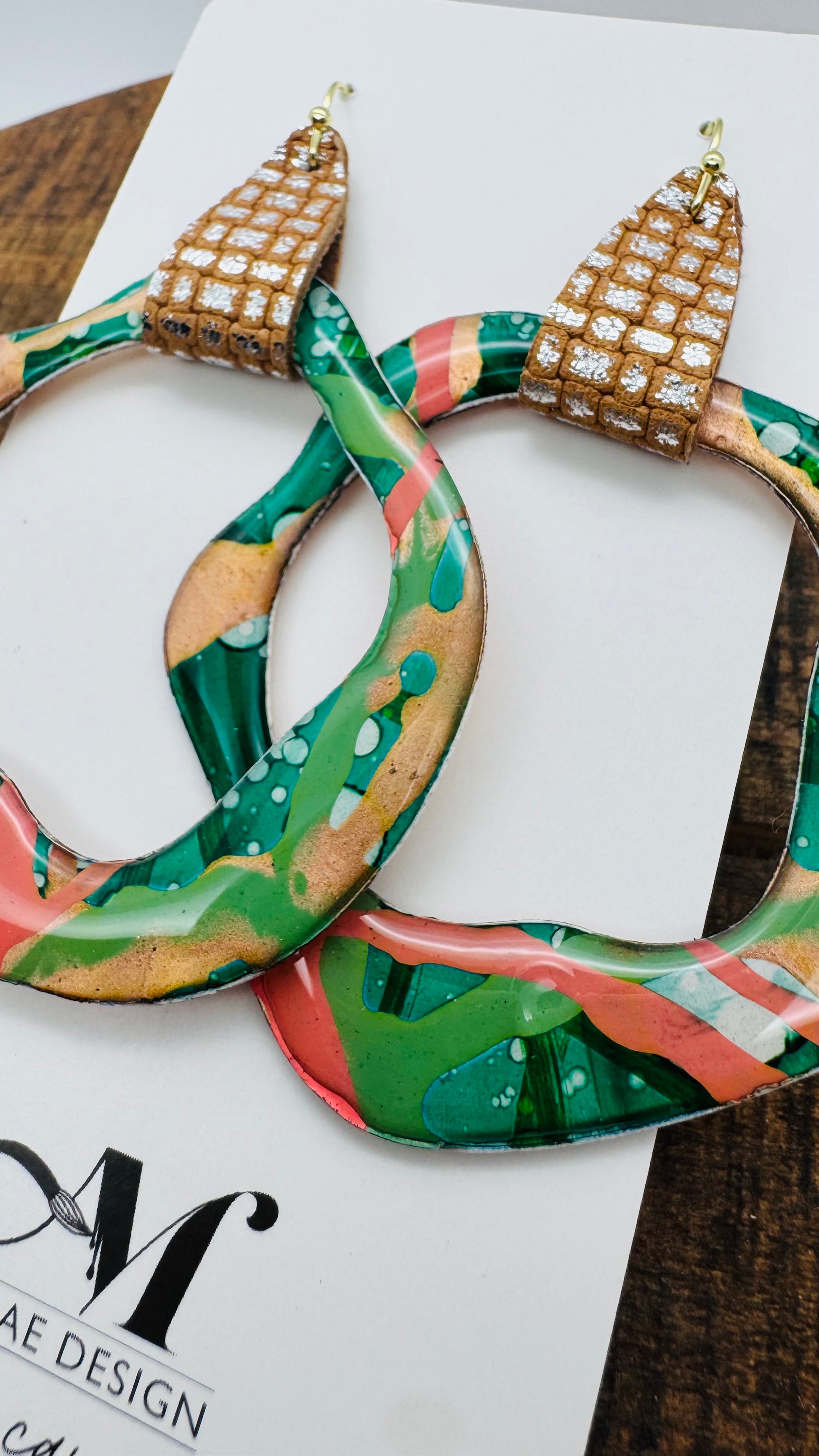 The Woodland Whimsy collection captures the magic of the forest in every detail. Each piece begins as an original painting on paper, alive with vibrant colors and organic textures. These artworks are then hand-cut into delicate leaf shapes and paired with the natural elegance of laser-cut black walnut. The fusion of painted patterns with the rich grain of wood creates jewelry that feels both modern and timeless—an homage to autumn’s beauty and nature’s artistry.